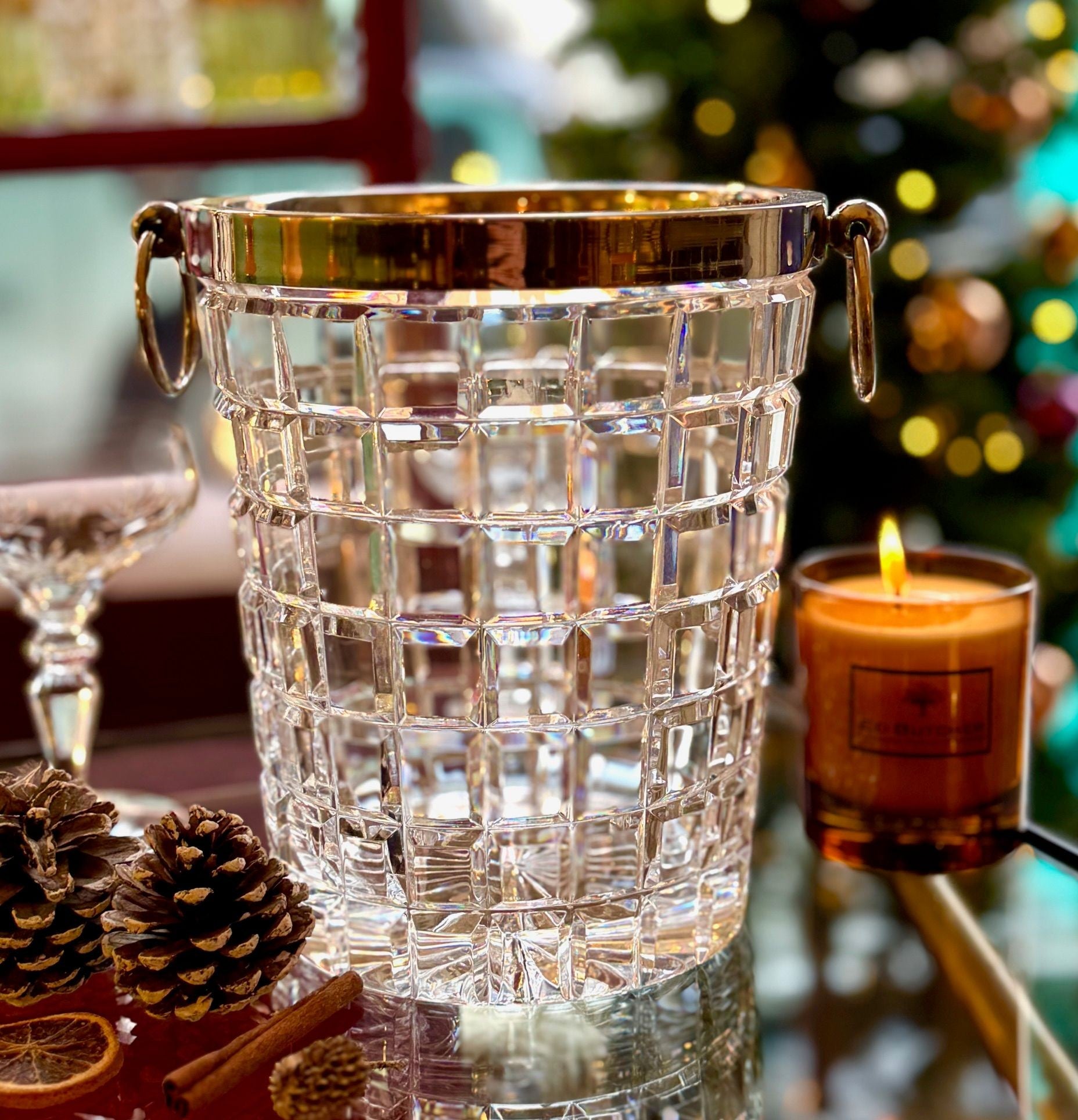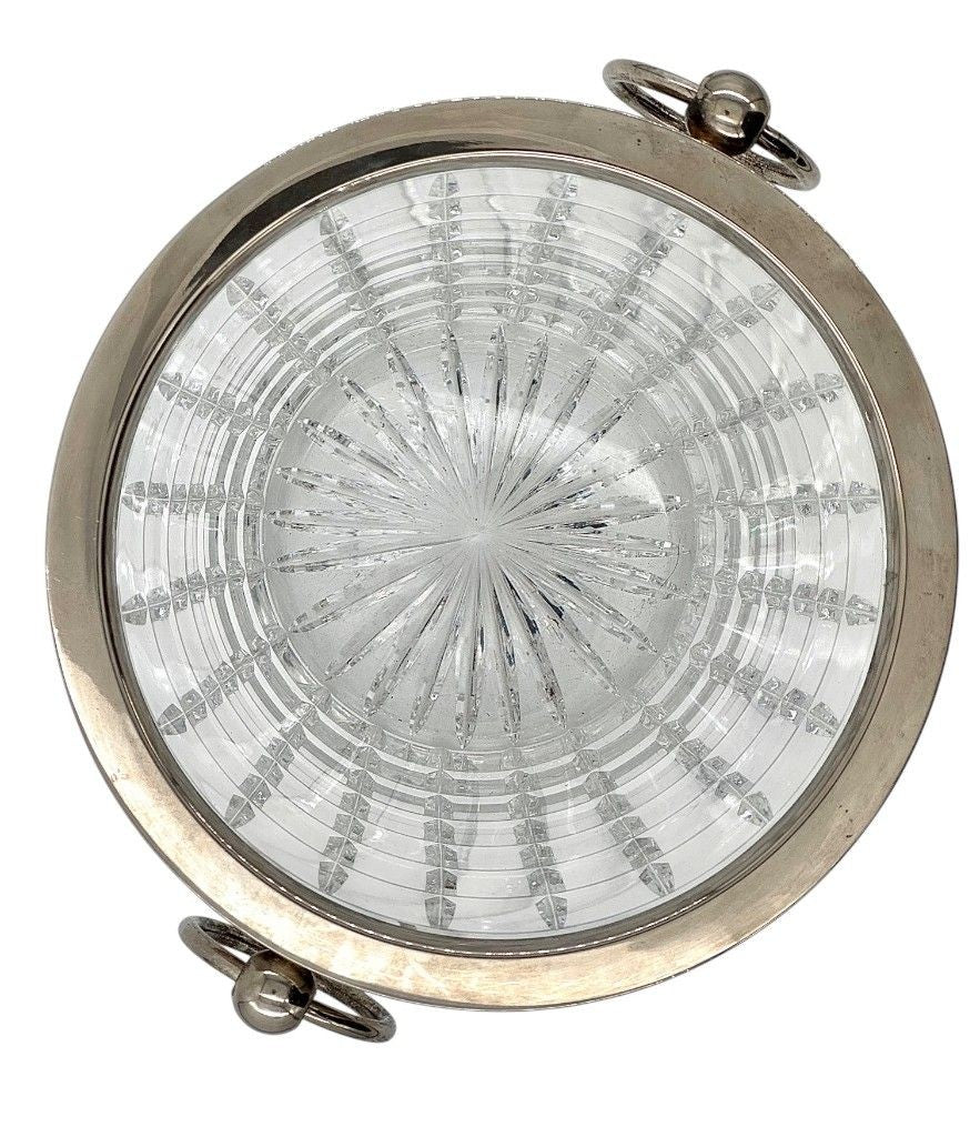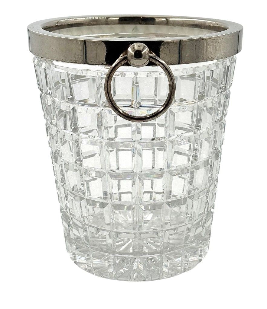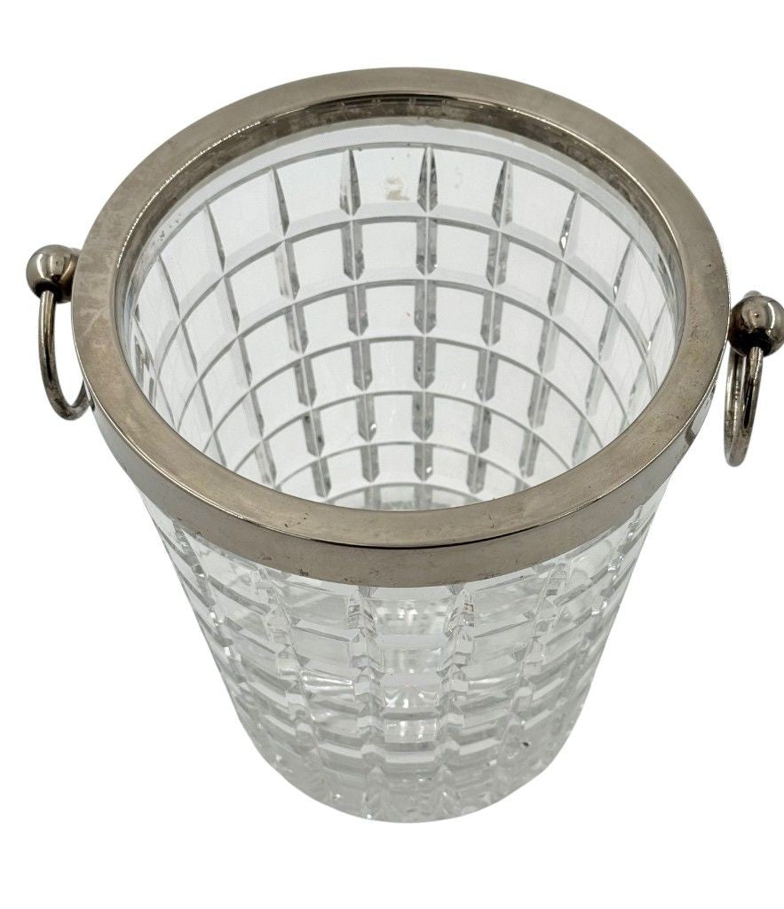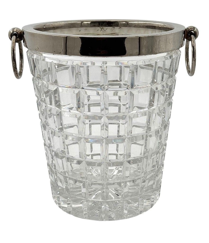 A 1960s Val Saint Lambert crystal and silver plated champagne bucket, with ring handles on each side.