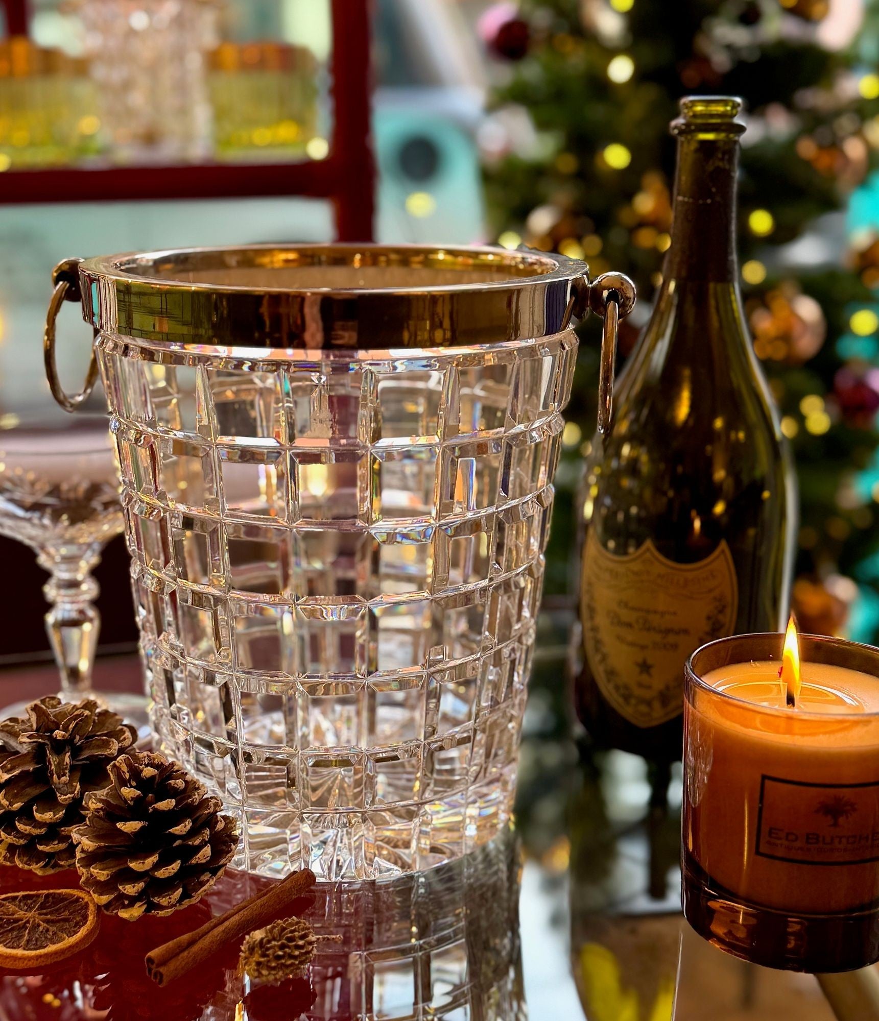 A 1960s Val Saint Lambert crystal and silver plated champagne bucket