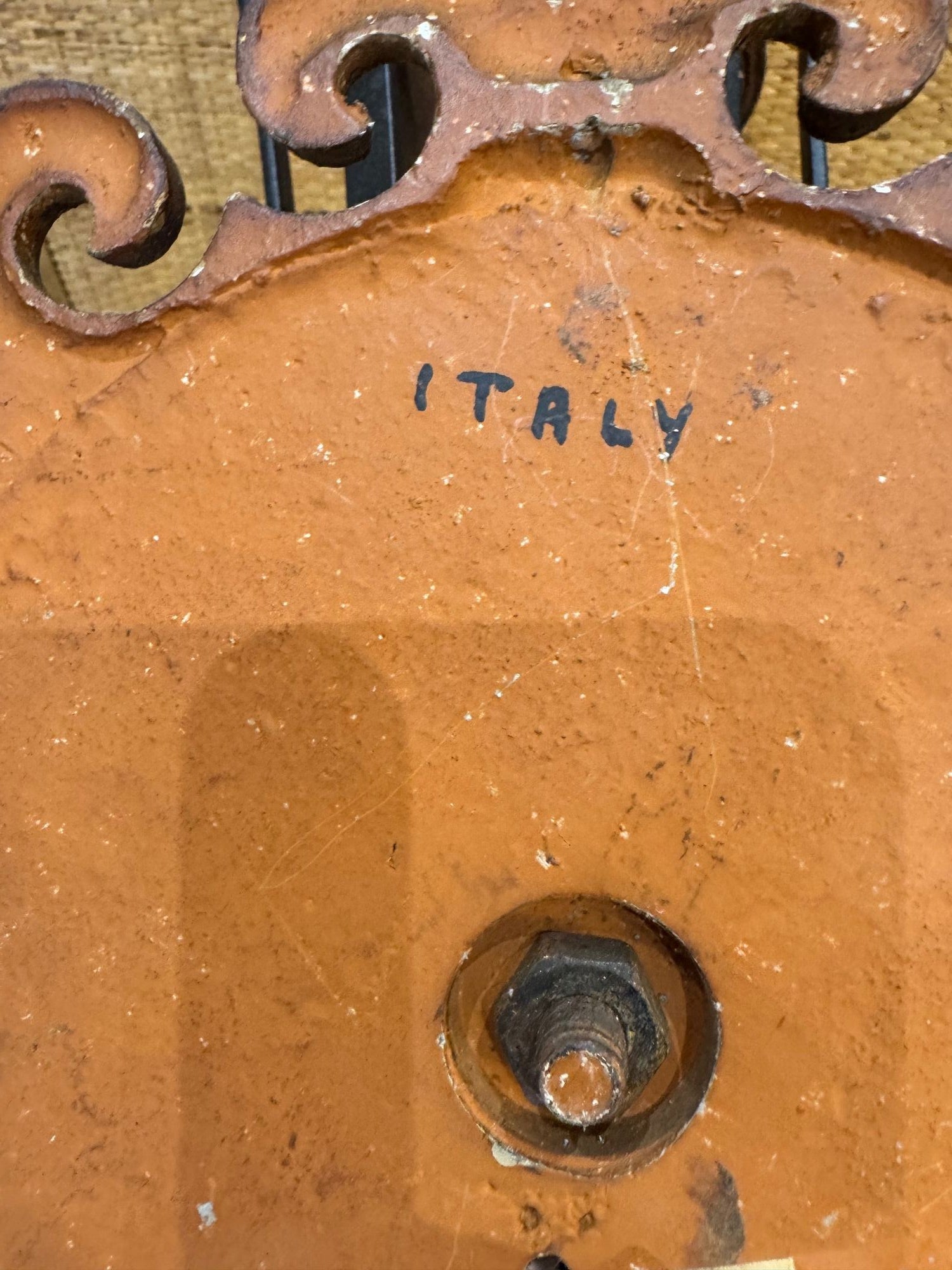 A large pair of Italian 1940s  torchiere gilt and black metal wall sconces, with metal rope detailing on an ornate back plate, both stamped on reverse "Italy". Each single central fitting, re-wired with new fittings and PAT tested.