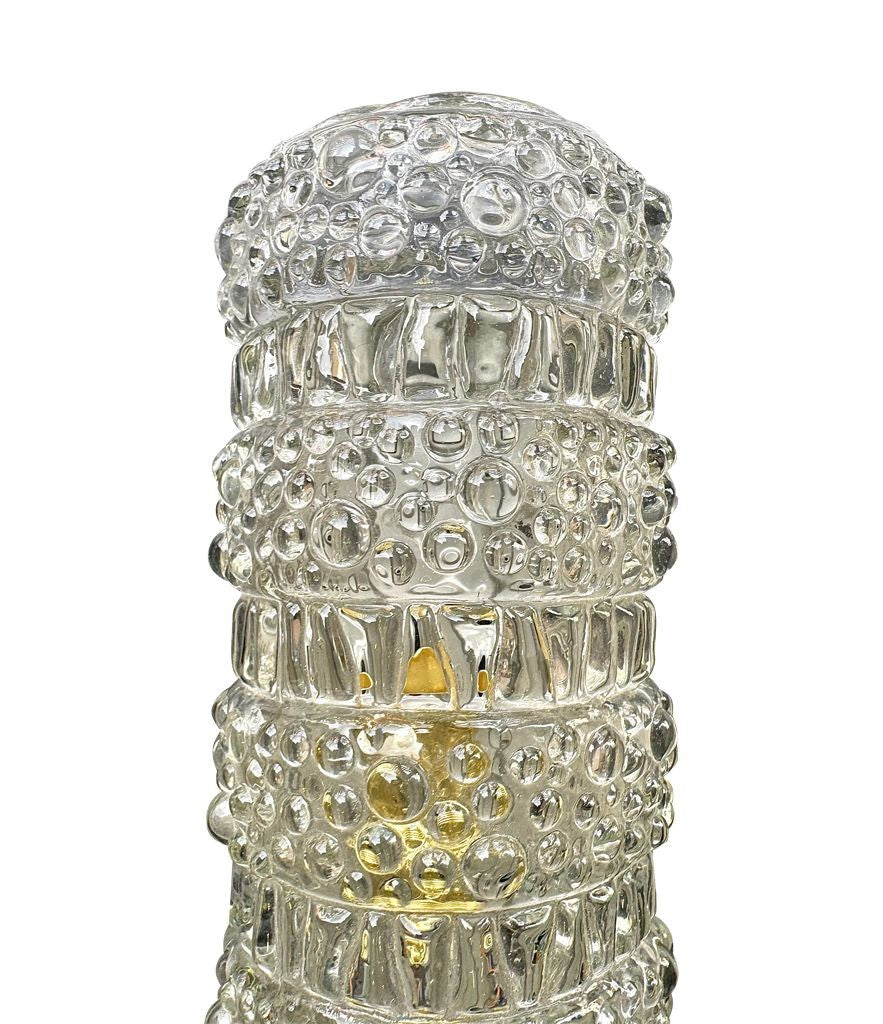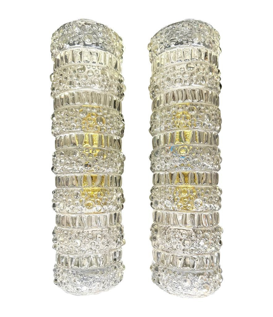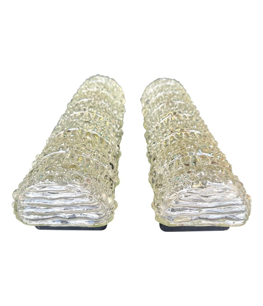 A pair of 1960s clear geometric textured glass wall lights
