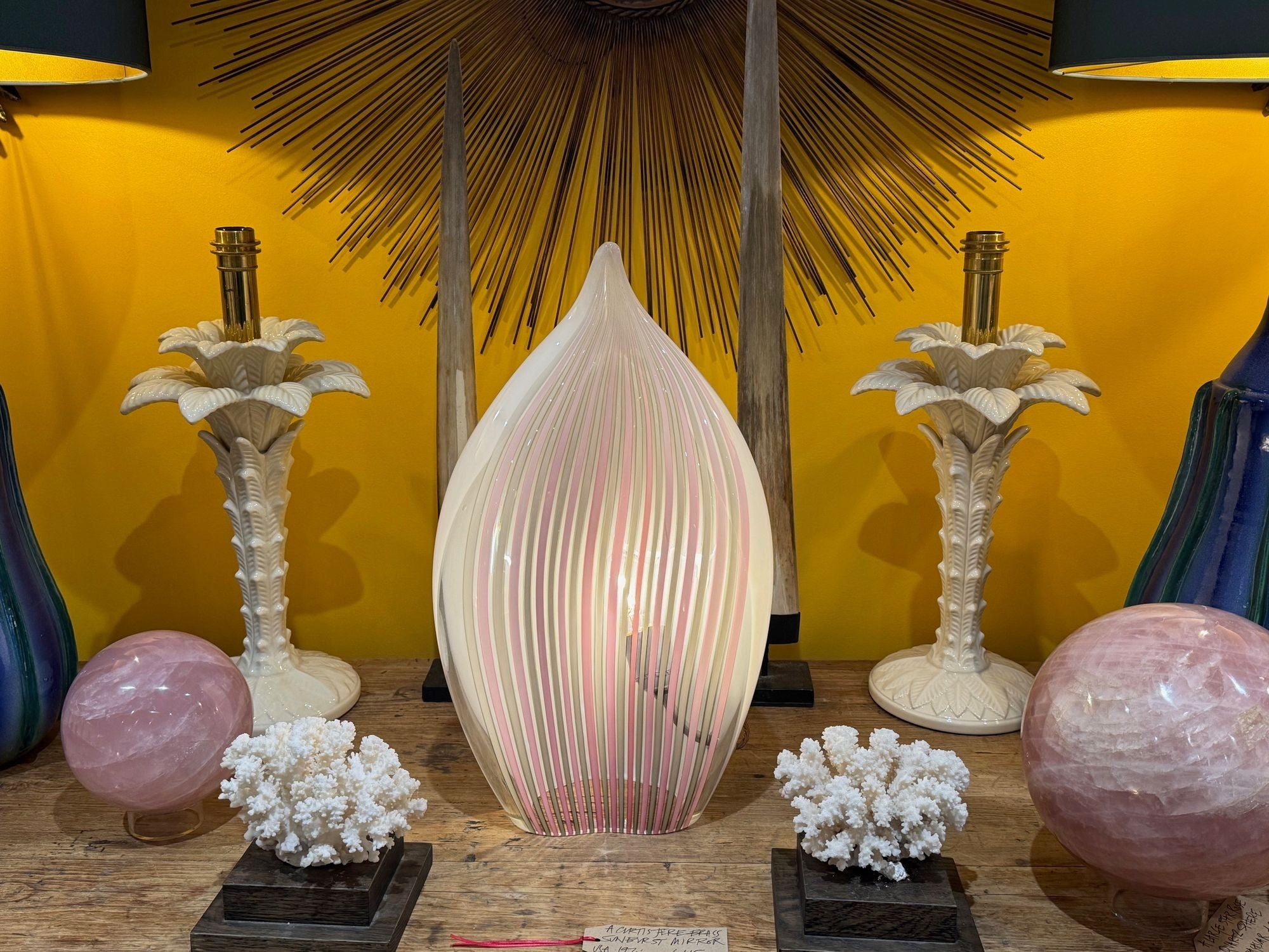 A pair of Italian ceramic 1970s palm tree lamps for lighting company Leola