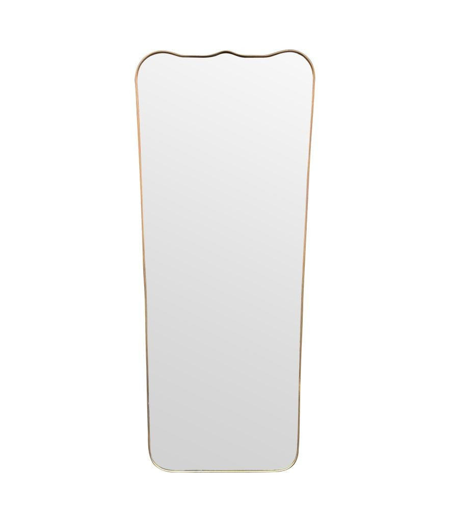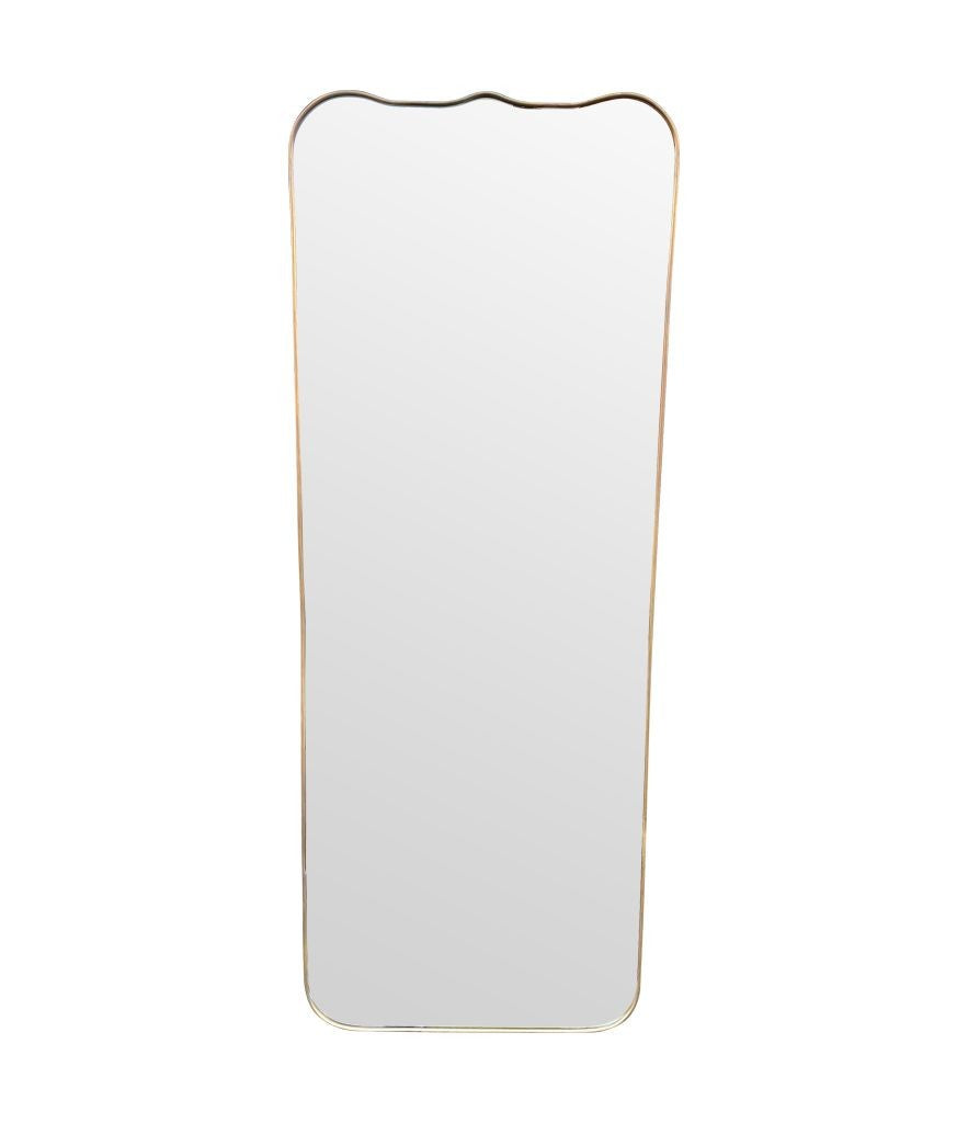A large full length orignal Italian 1950s brass framed mirror, with wonderful curved shaped, scolloped top detail and solid wood back.