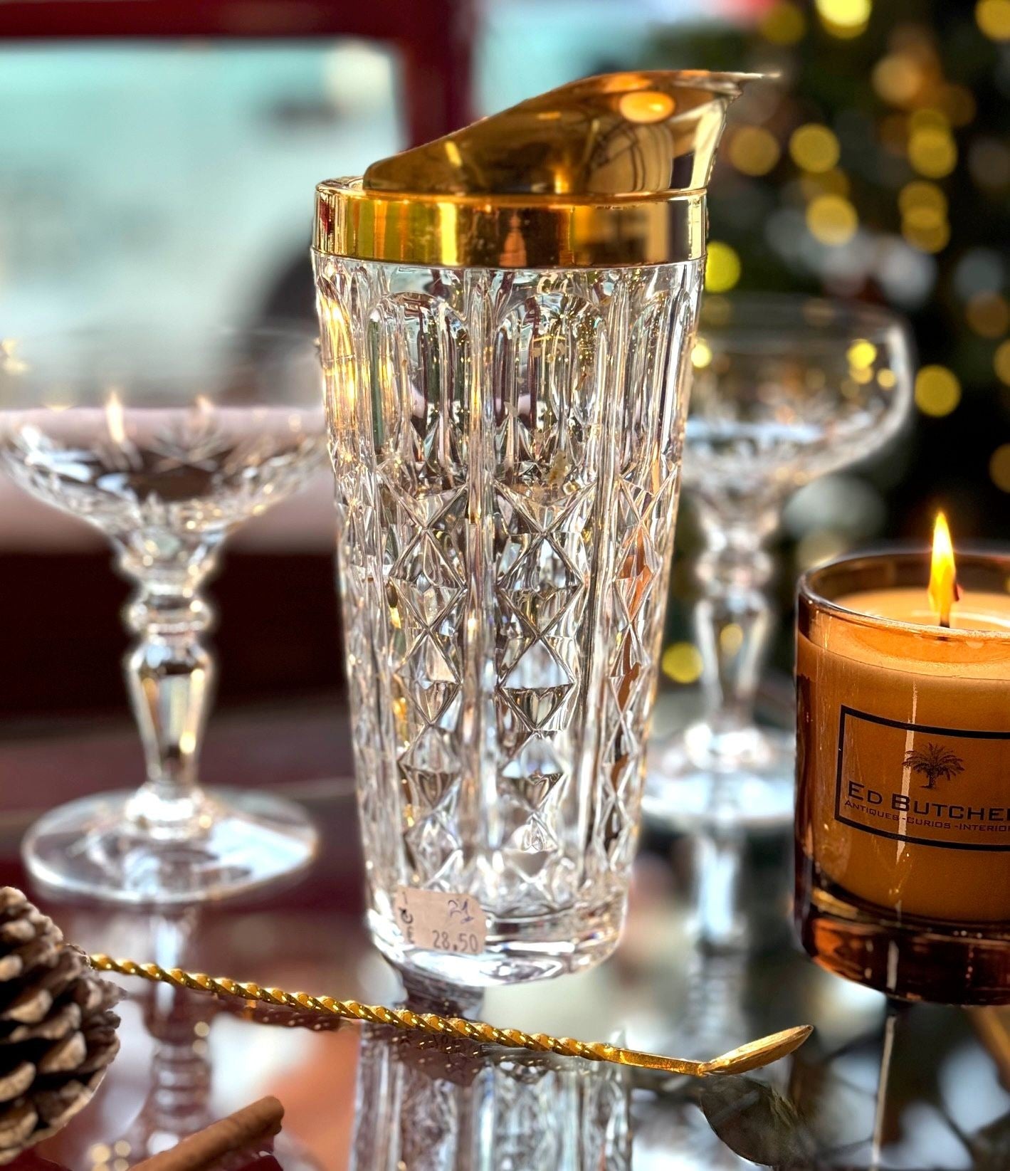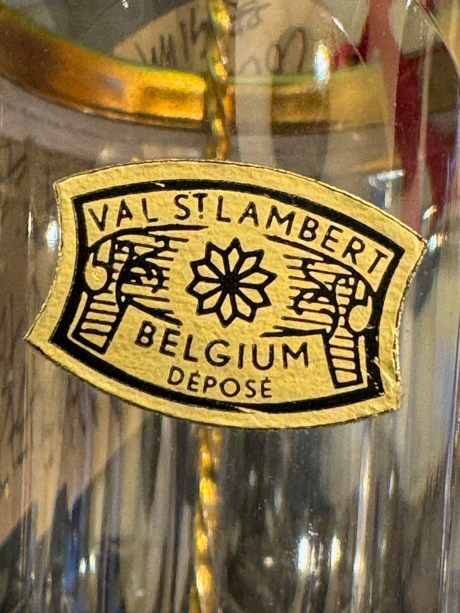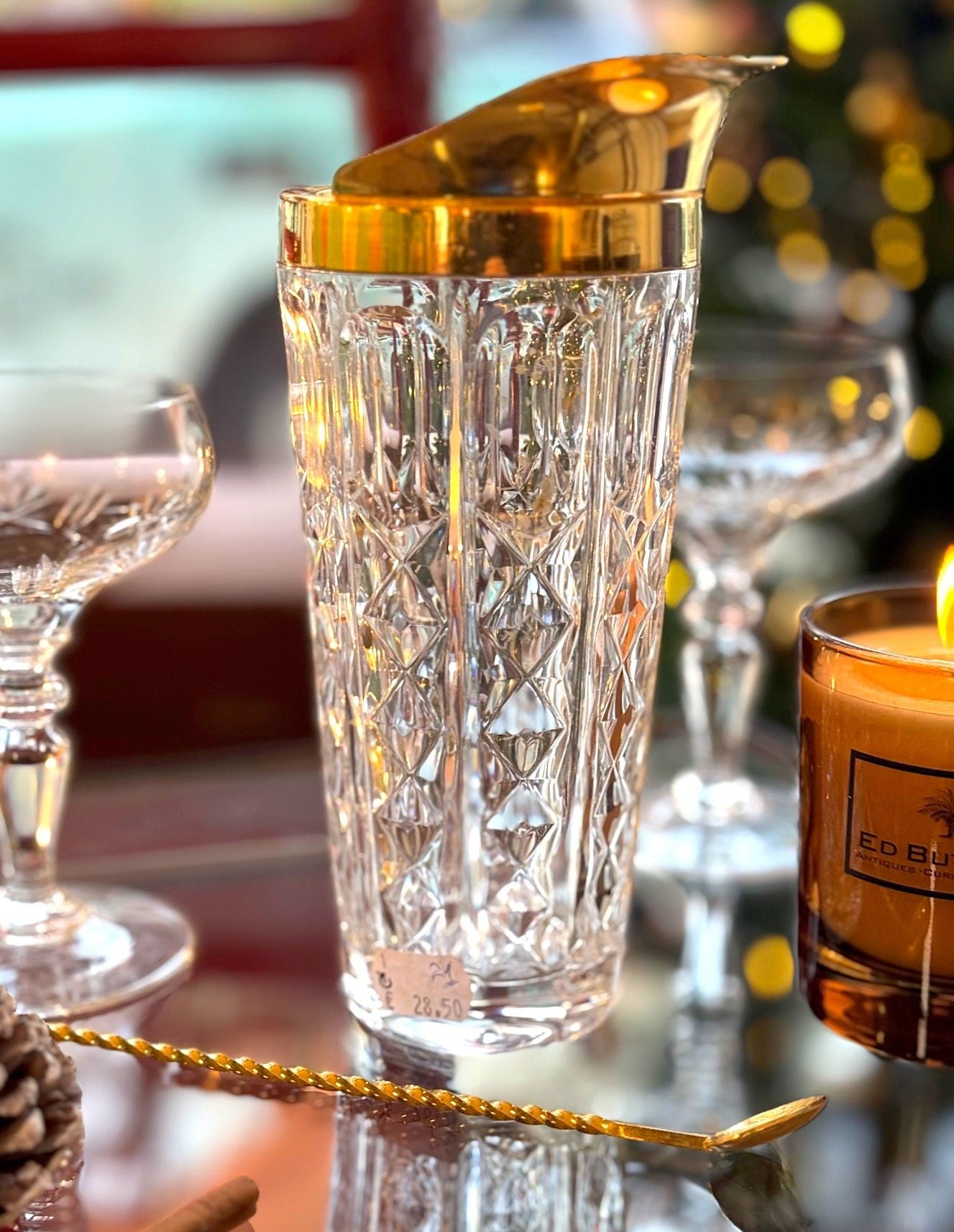A 1950s Val Saint Lambert crystal and gold plated cocktail jug