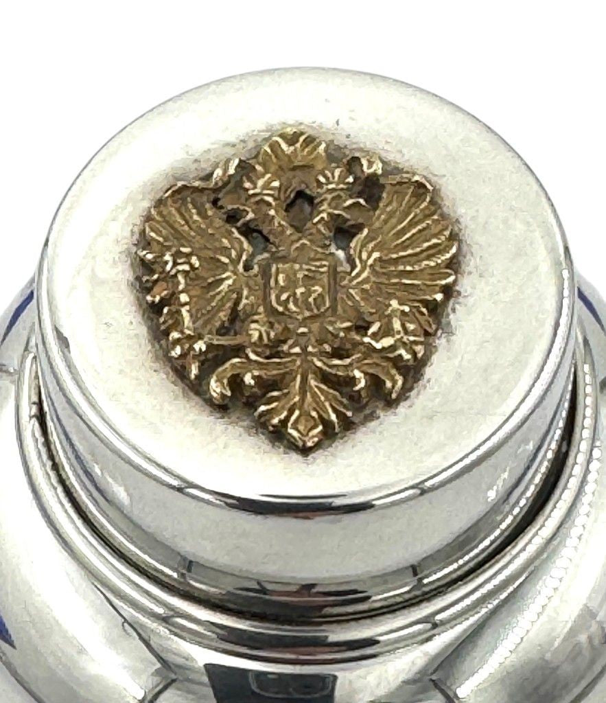 A Faberge crystal "Grand Duke" cocktail set with silver plated cocktail shaker and 4 glasses