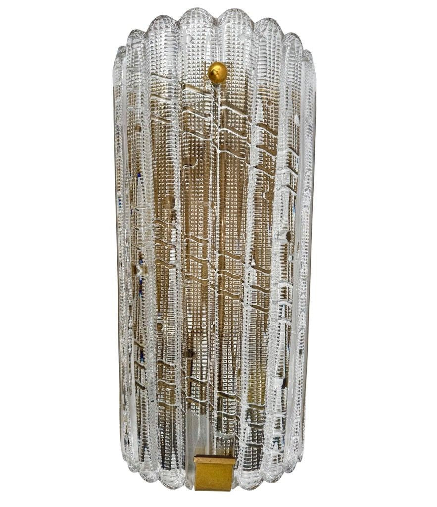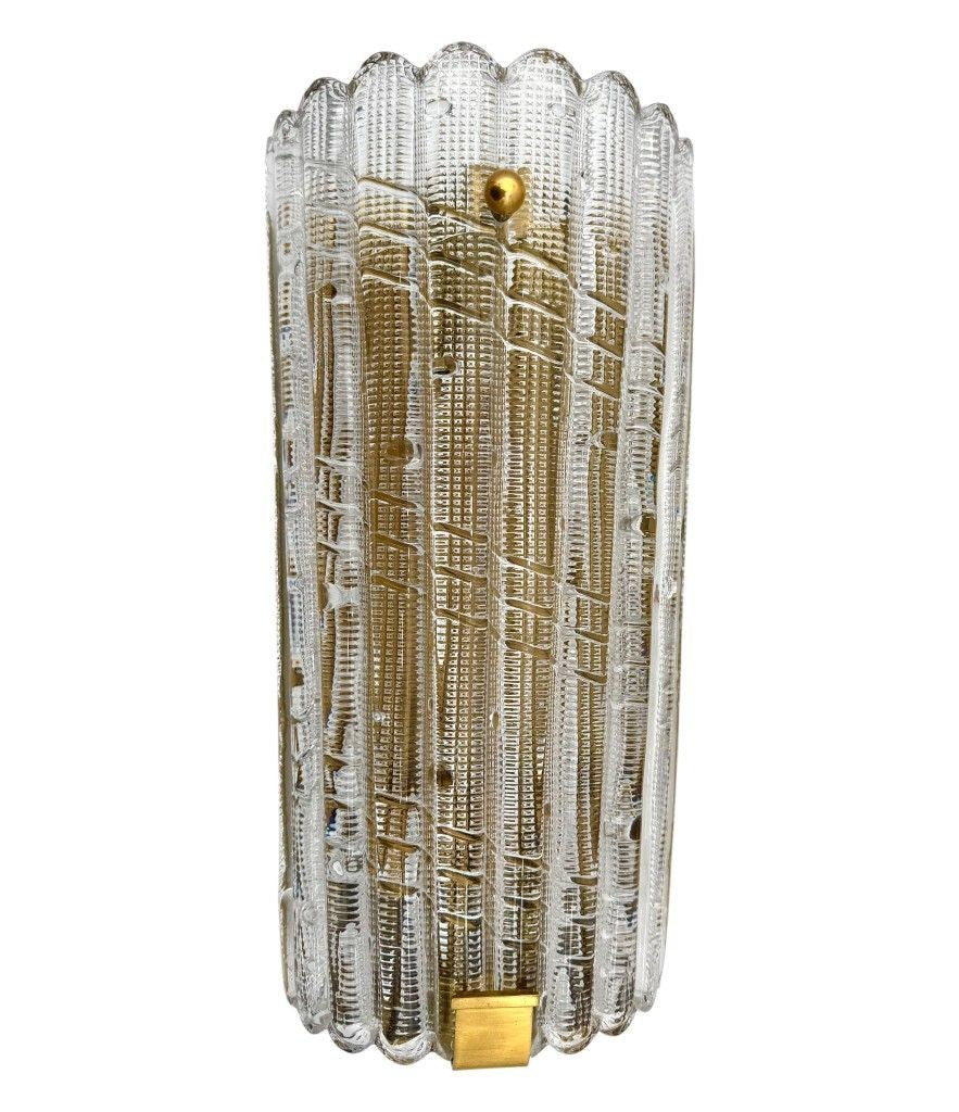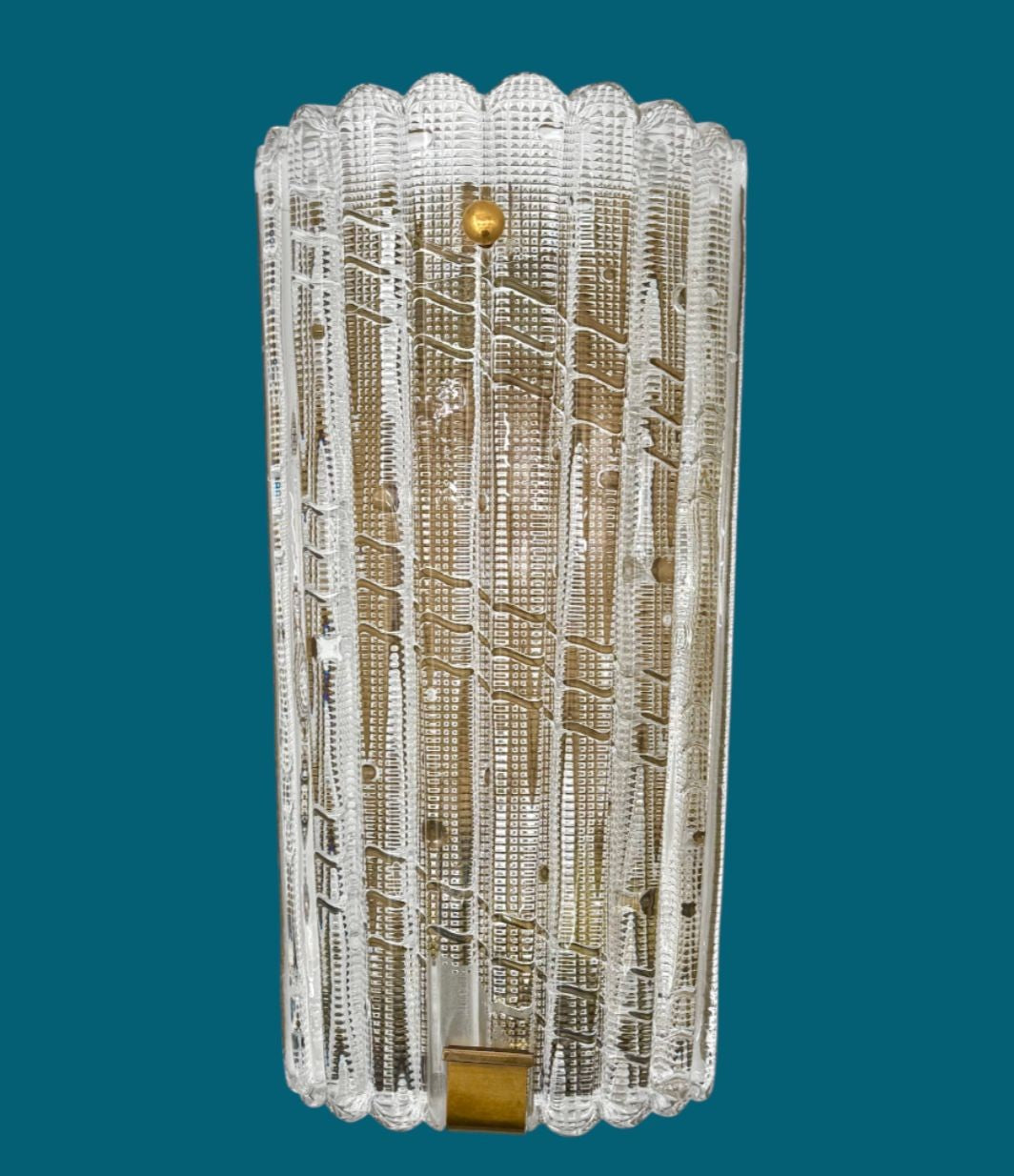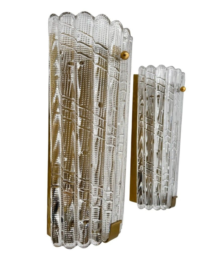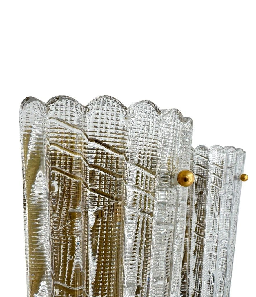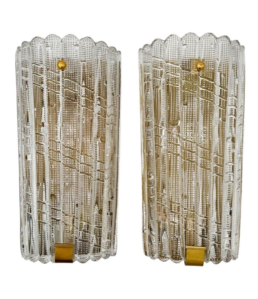 A large pair of Swedish 1960s Orrefors glass and brass wall sconces by Carl Fagerlund