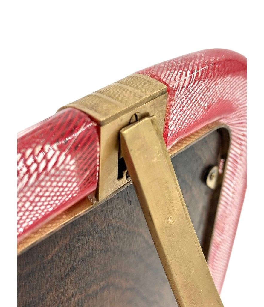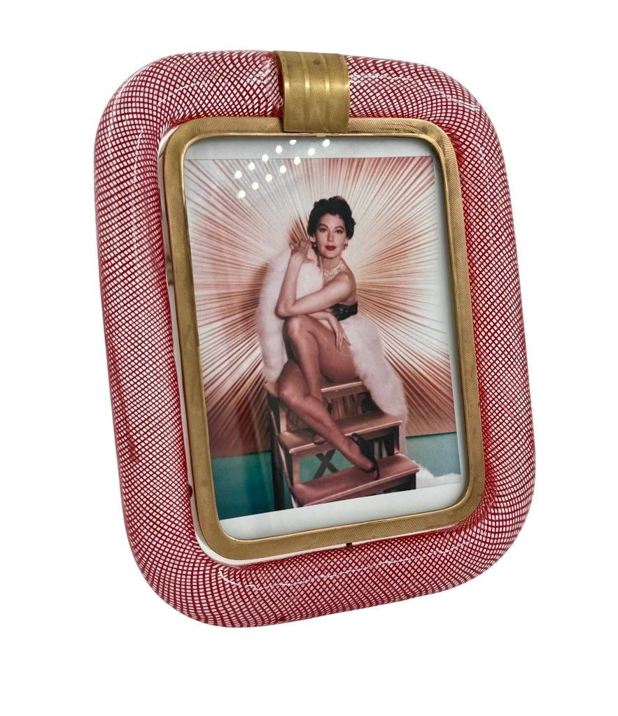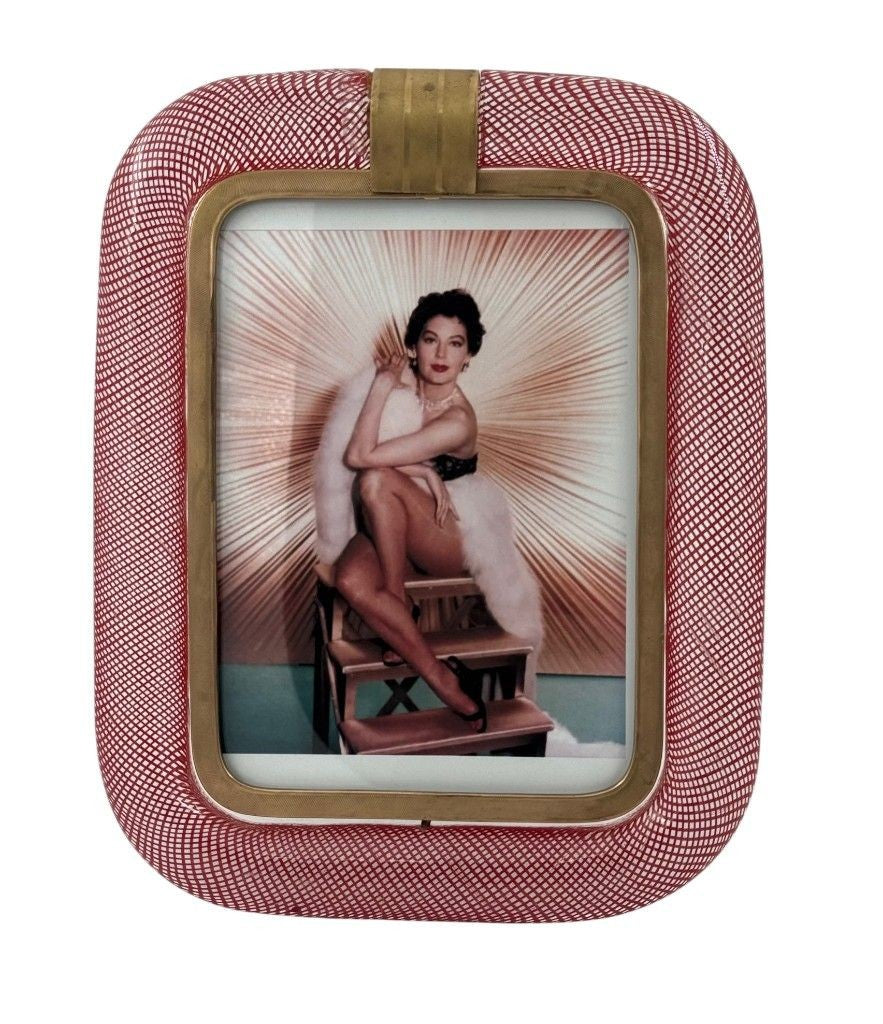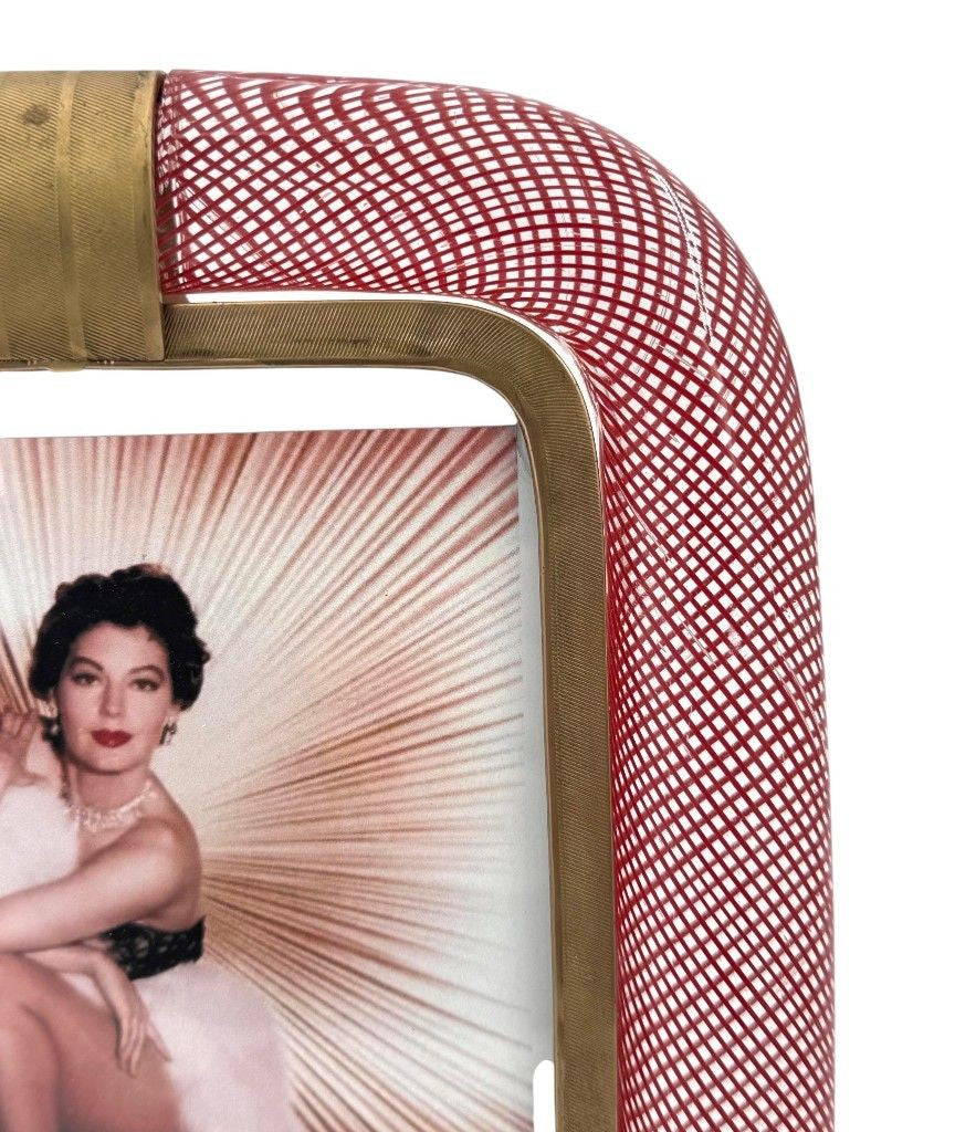 A rare Venini & Co red Murano "Filigrana a Reticello" glass and brass frame by Carlo Scarpa