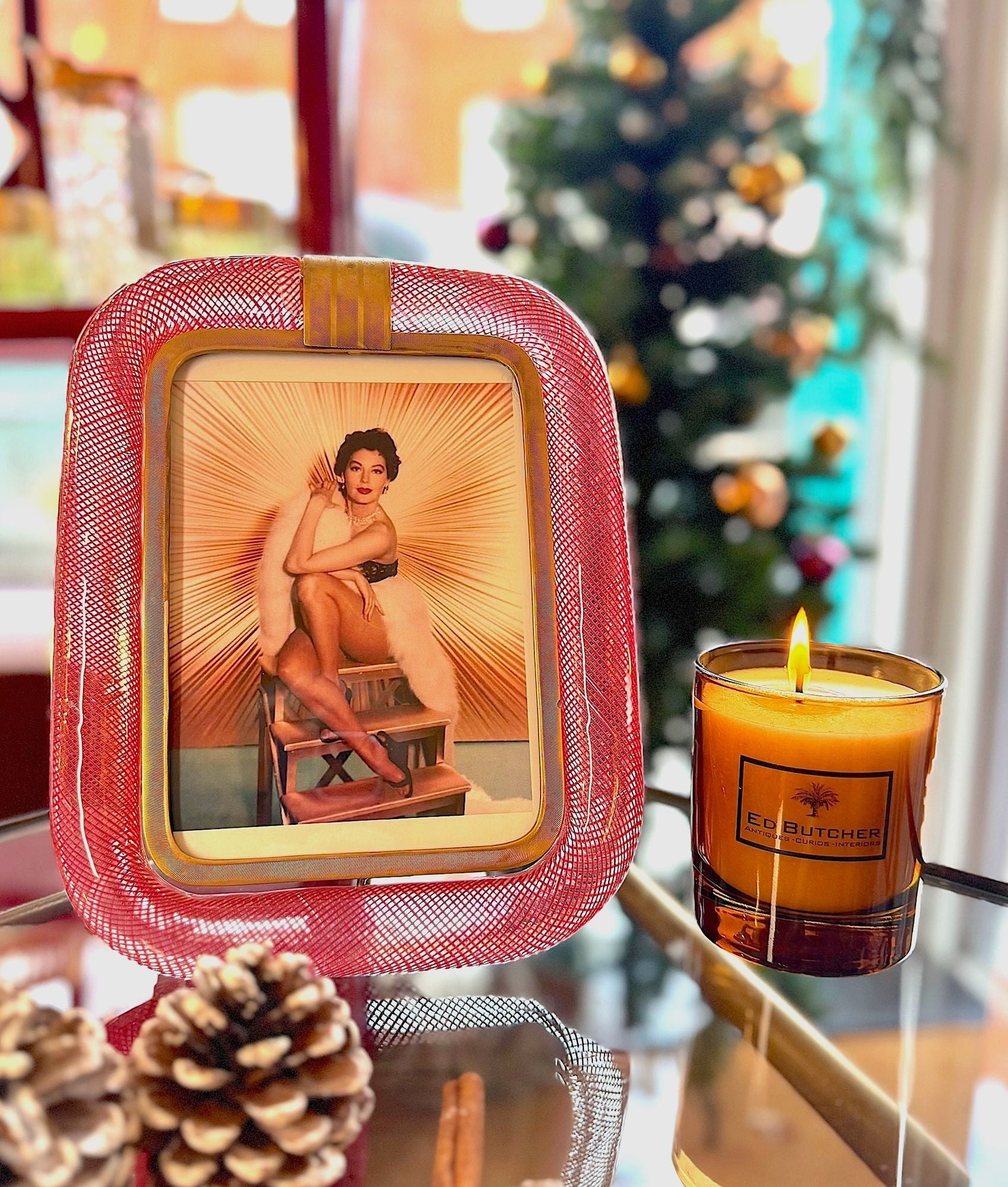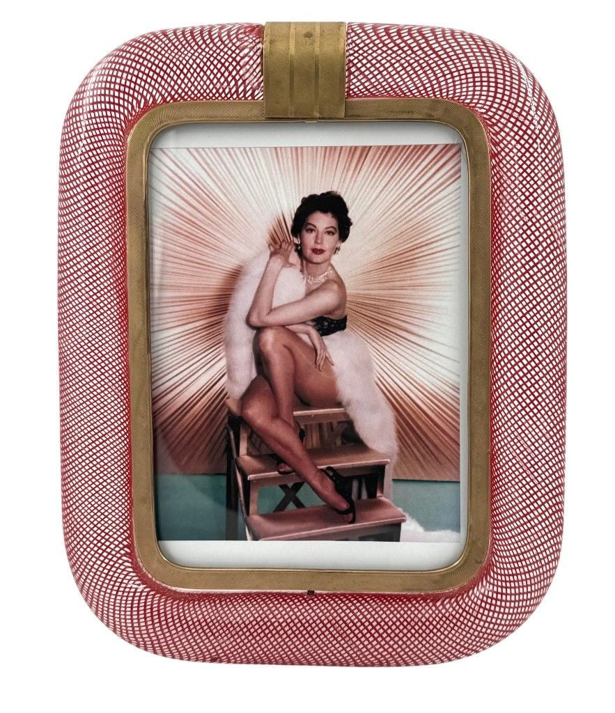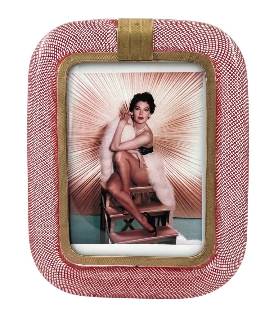 A rare Venini & Co red Murano "Filigrana a Reticello" glass and brass frame by Carlo Scarpa