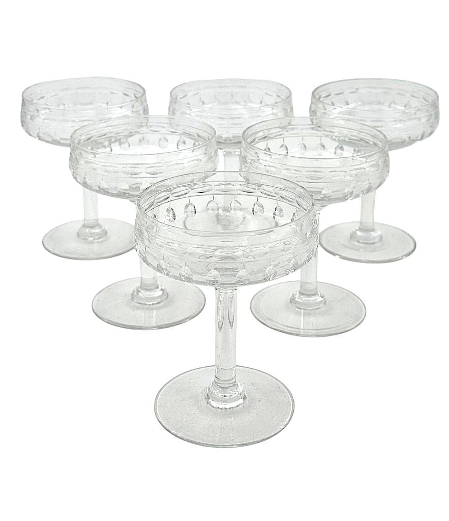 A set of six 1940s Val Saint Lambert "Cordoba" crystal cocktail / champagne coupes