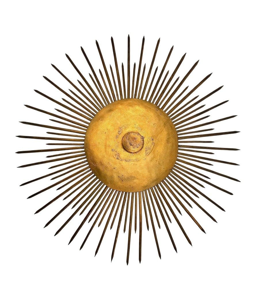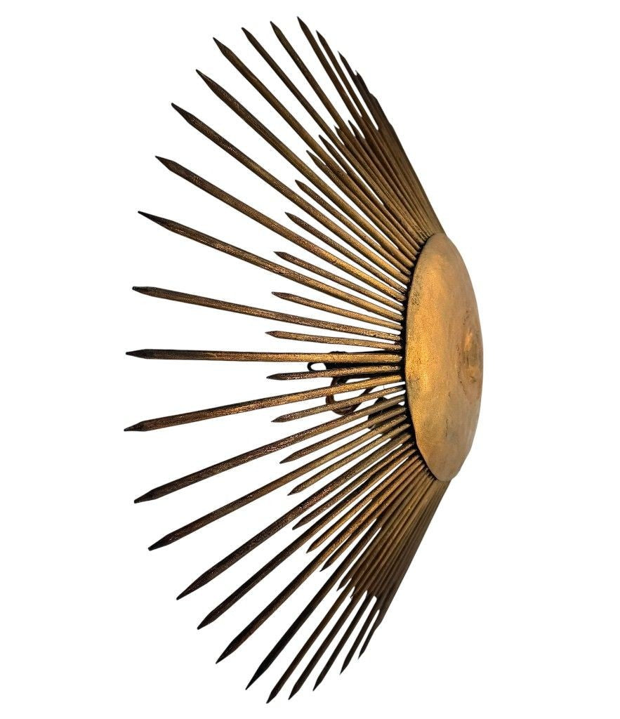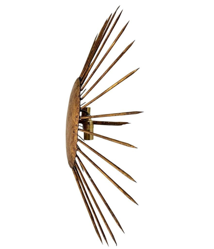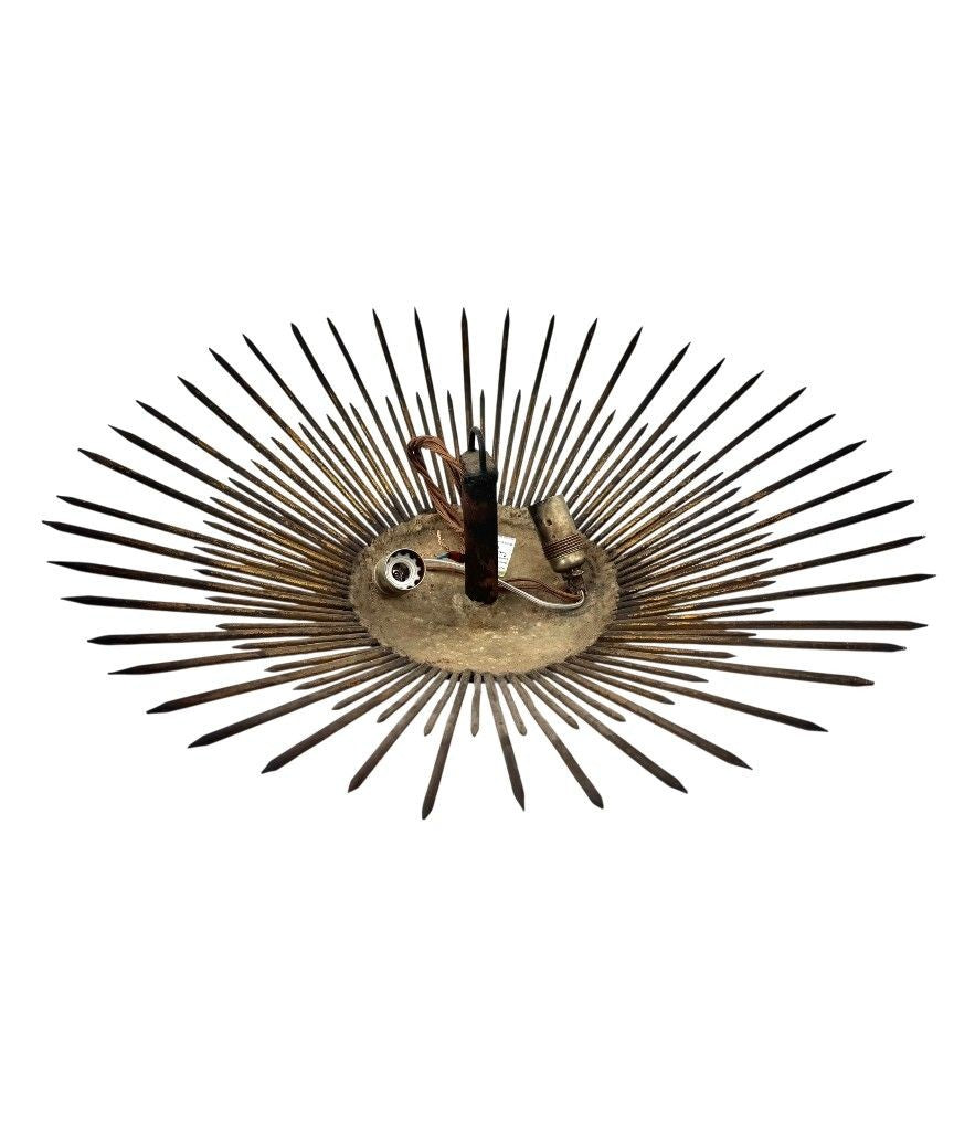 A Spanish 1950s gilt wrought iron sunburst wall / ceiling light