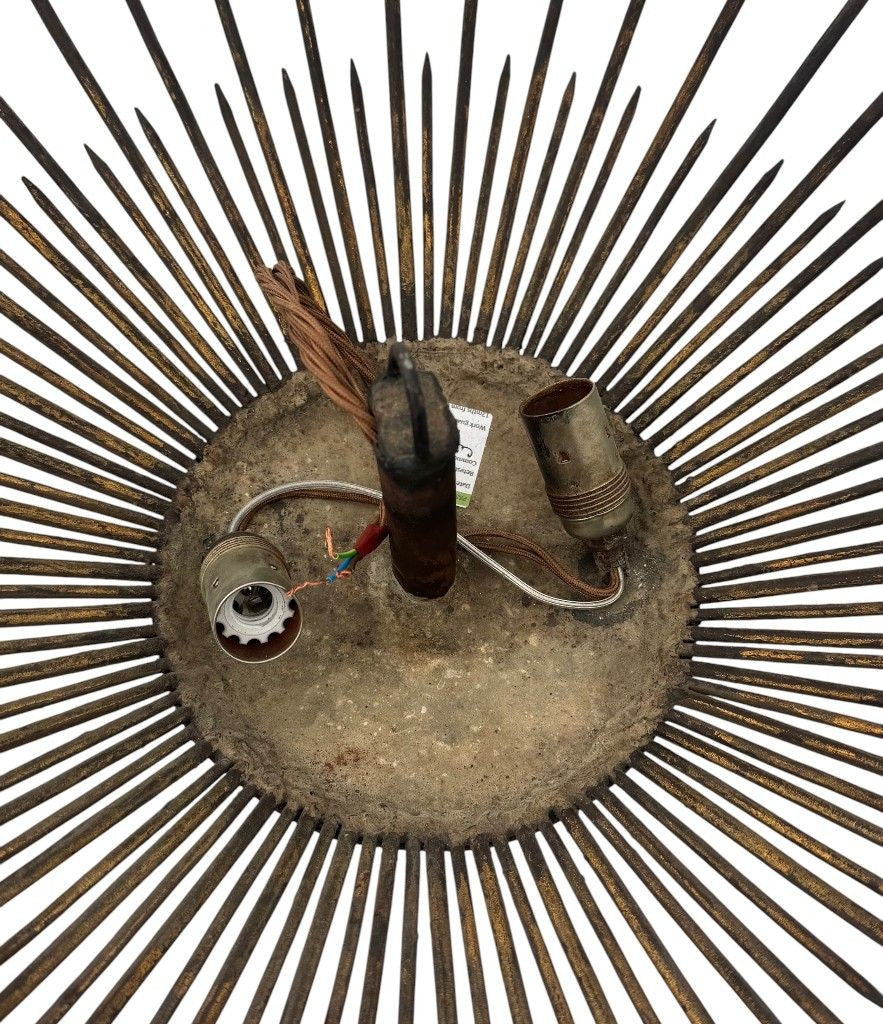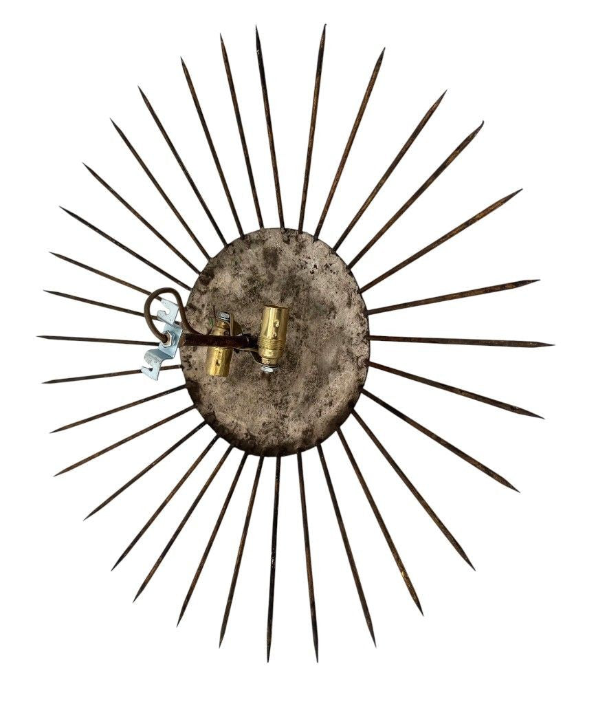 A Spanish 1950s wrought iron sunburst wall / ceiling light. Re wired with two new brass fittings and PAT tested