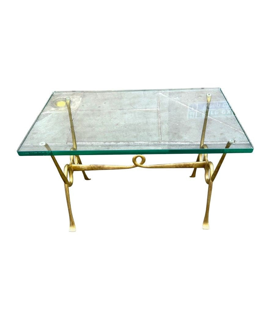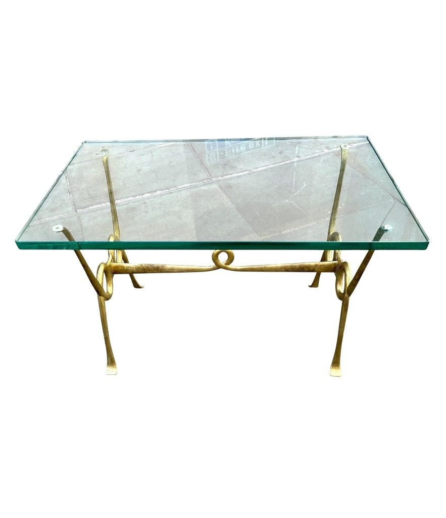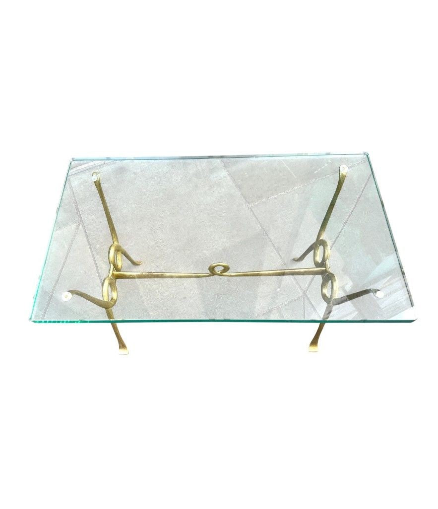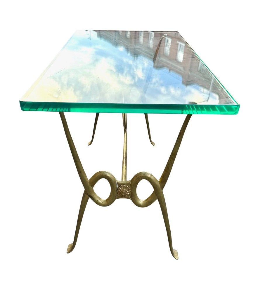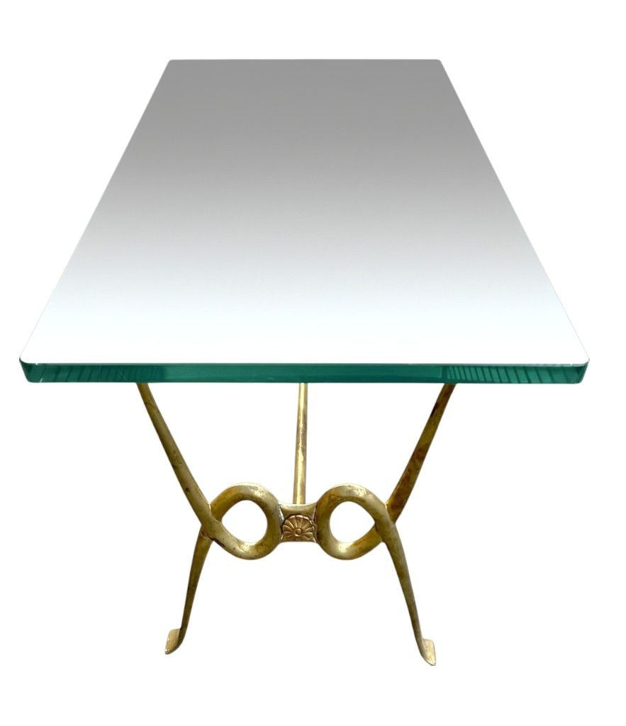 An Italian 1950s Fontana Arte style brass and thick glass cocktail table by Janetti, Florence