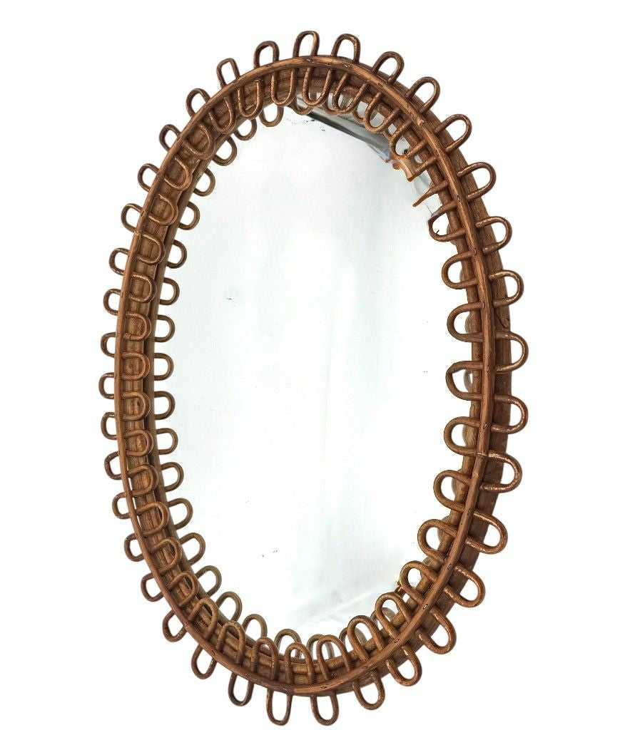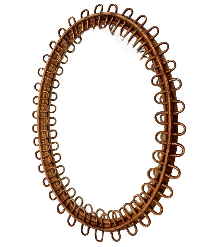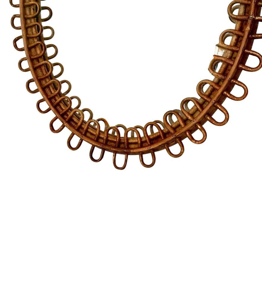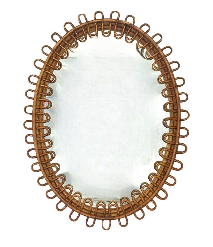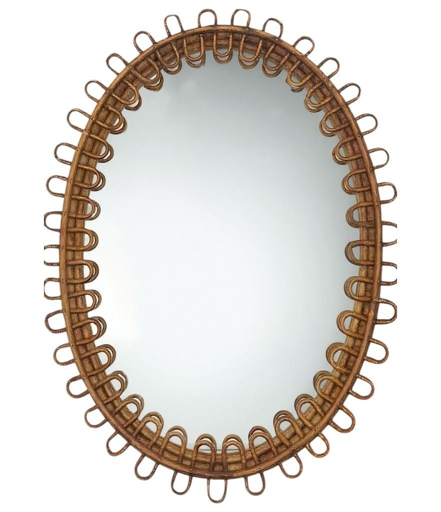 An Italian 1960s oval bamboo framed mirror by Franco Albini