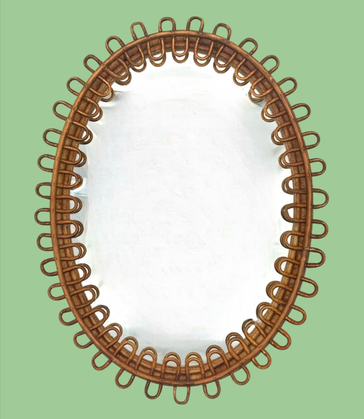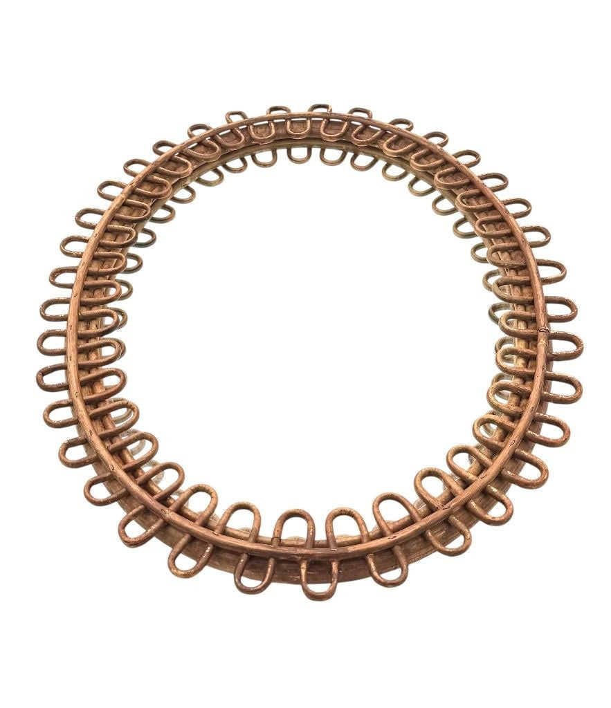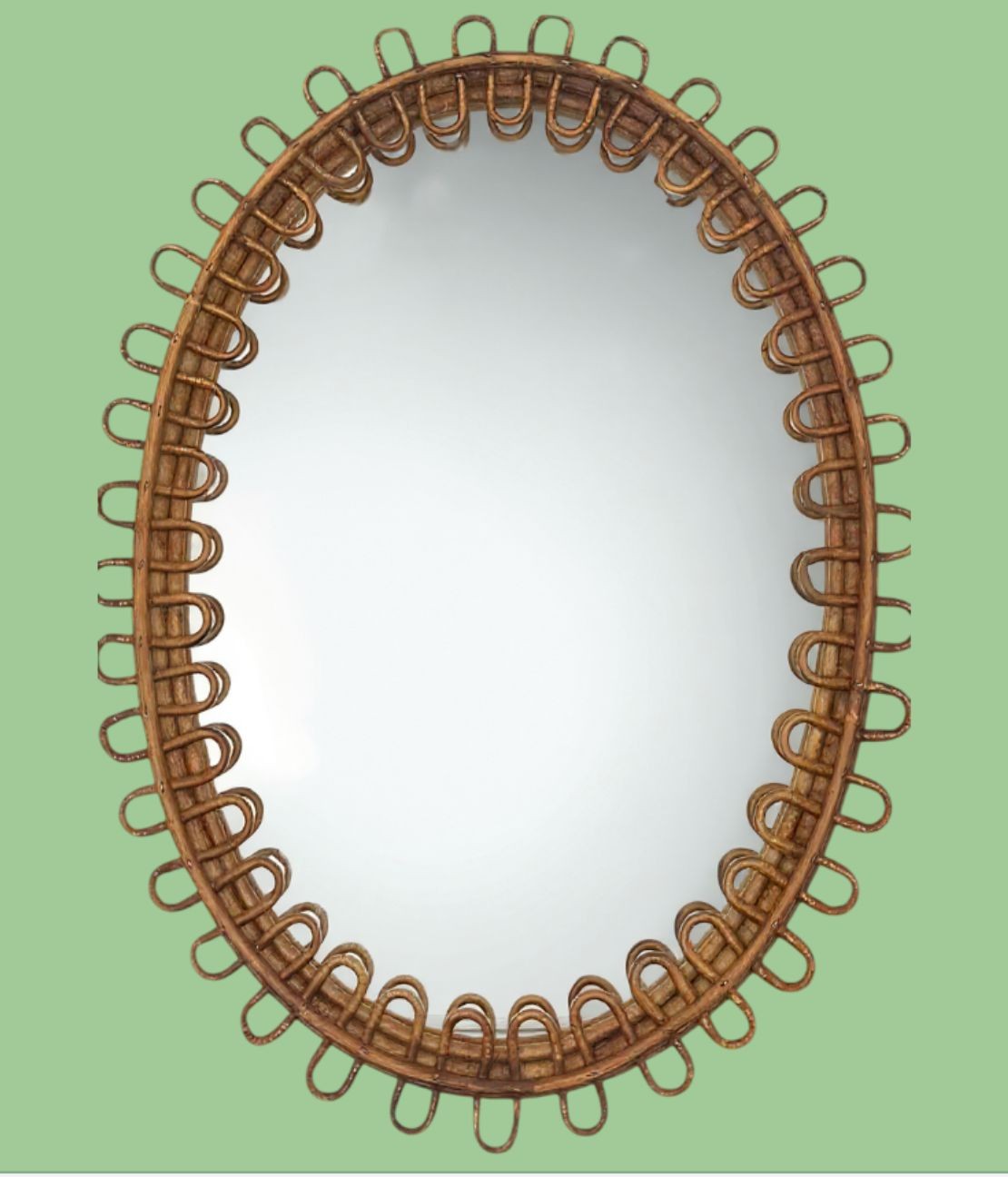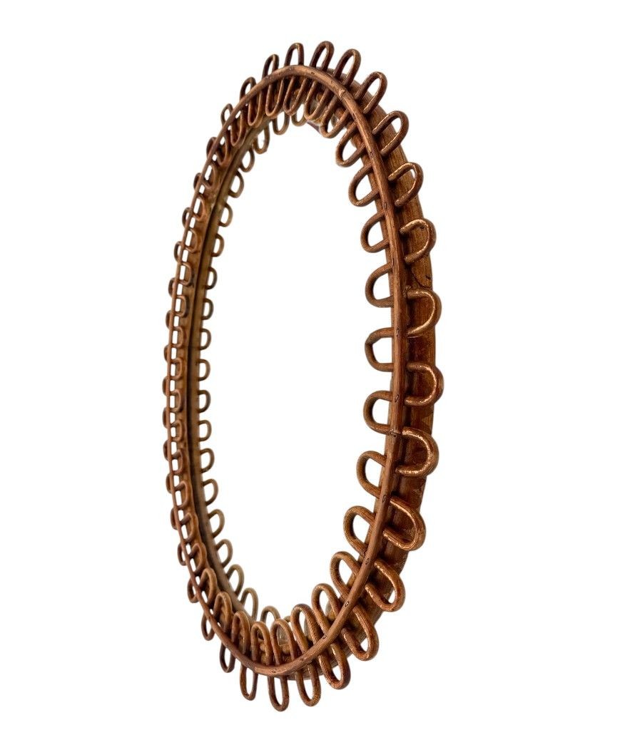An Italian 1960s oval bamboo framed mirror by Franco Albini