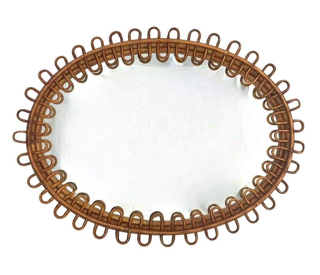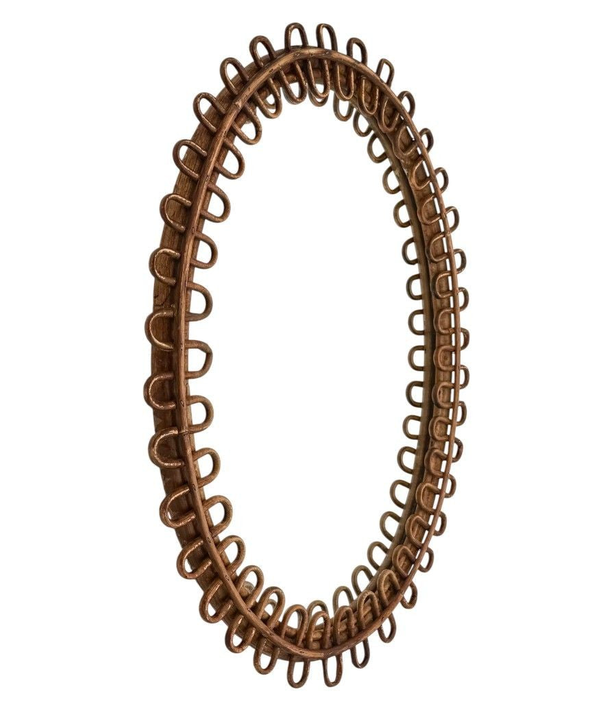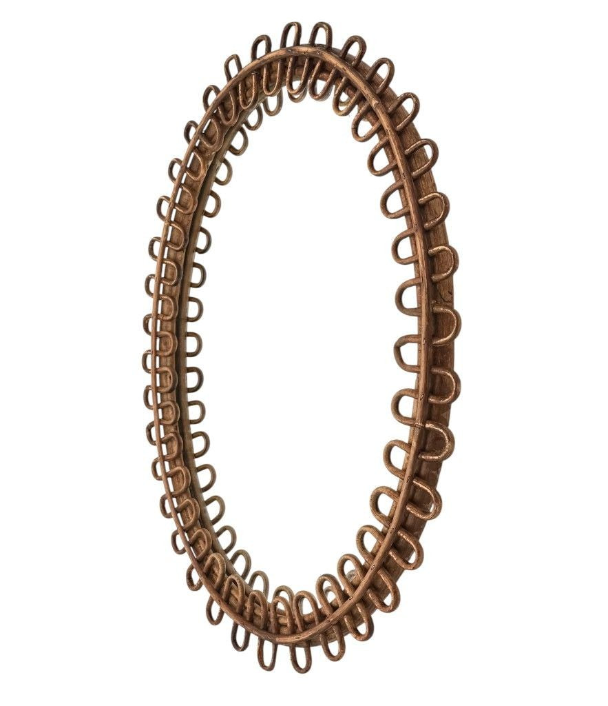 An Italian 1960s squiggle framed oval bamboo mirror by Franco Albini for Bonacina. With original mirror plate and red felt back. It could be hung either landscape or portrait.