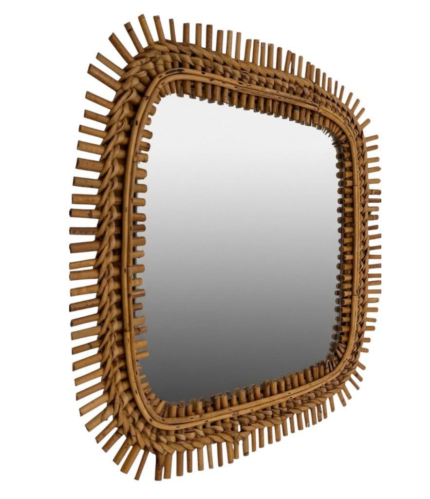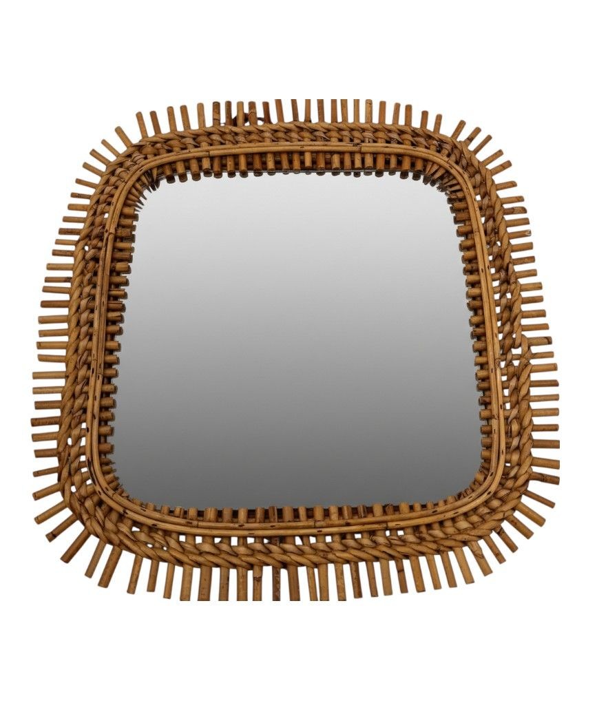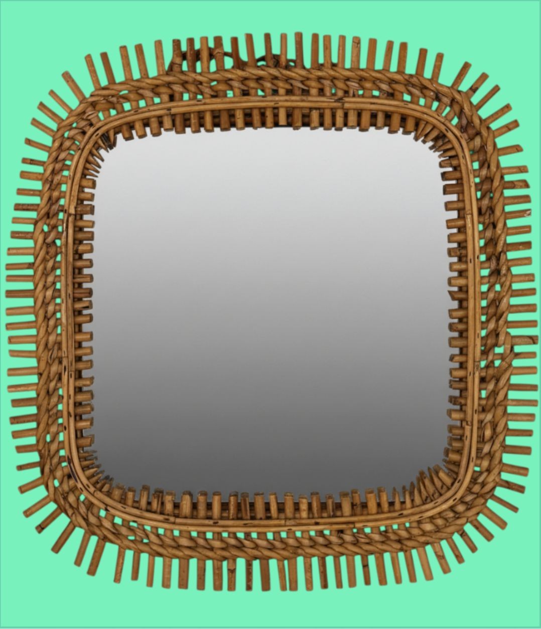 An Italian 1960s square split cane bamboo mirror by Franco Albini for Bonacina