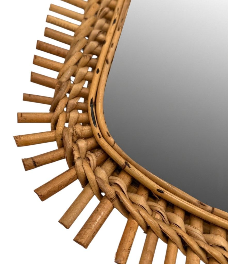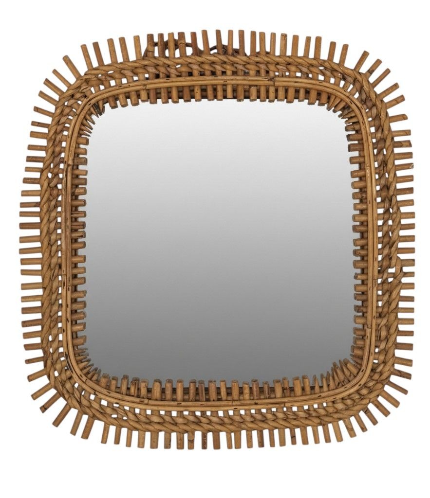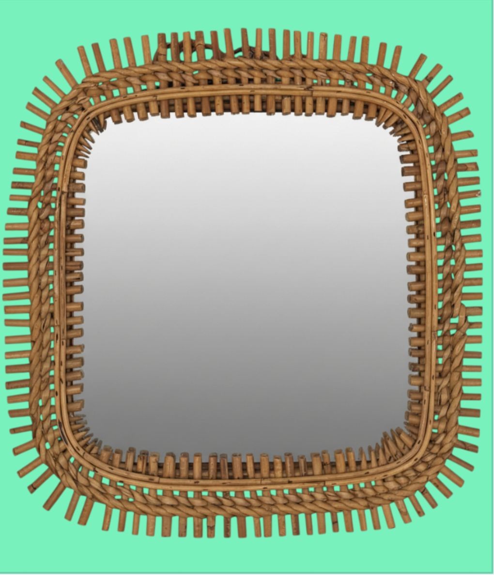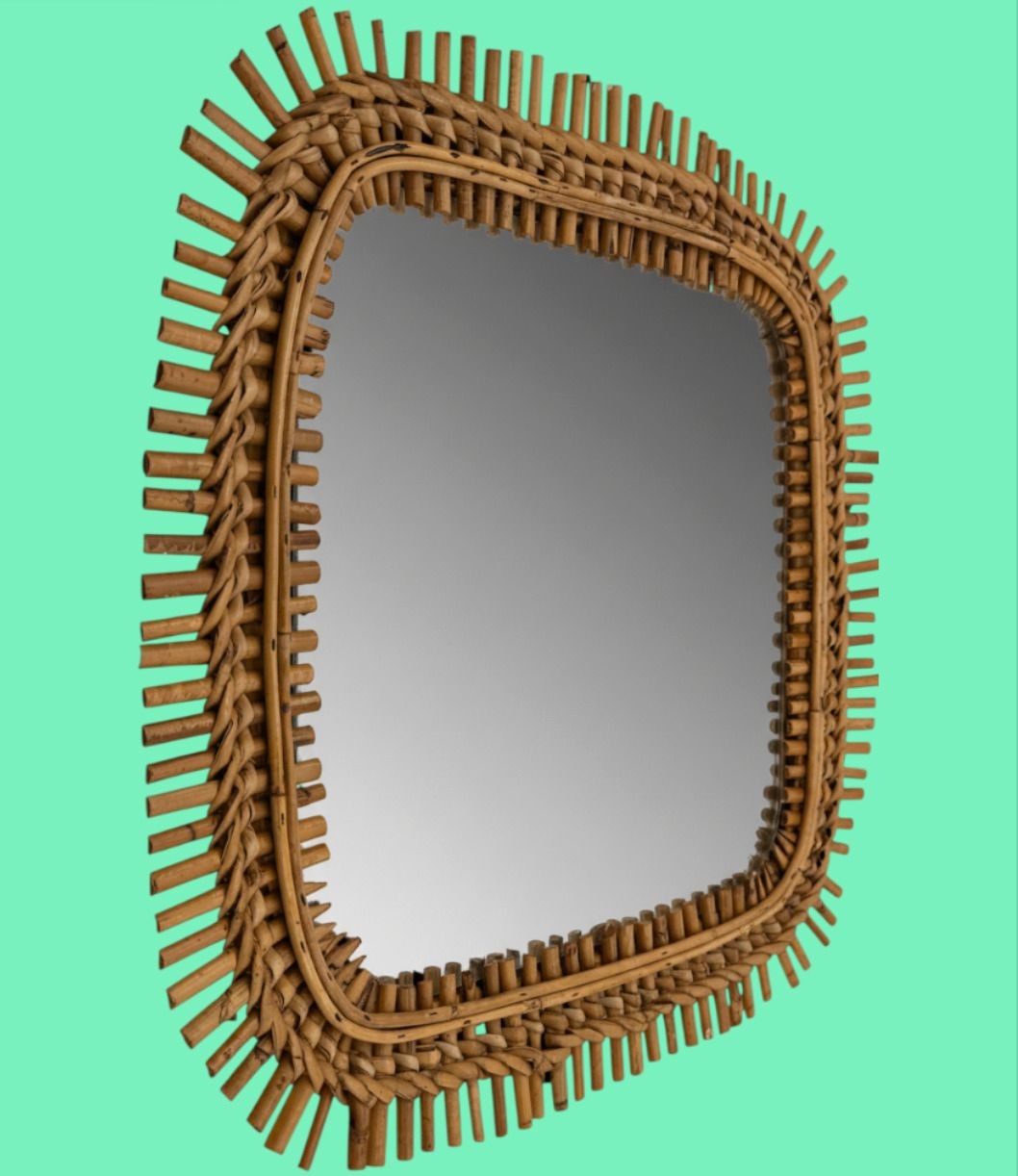 An Italian 1960s square split cane bamboo mirror by Franco Albini for Bonacina