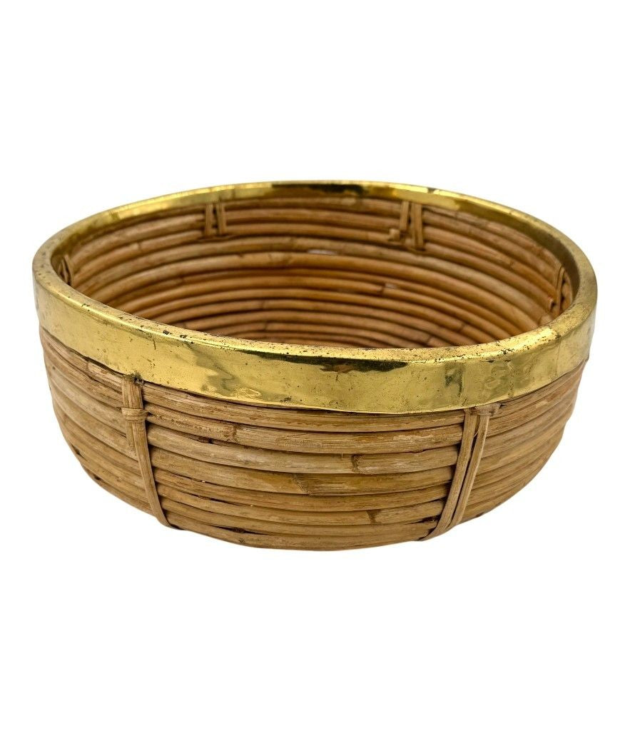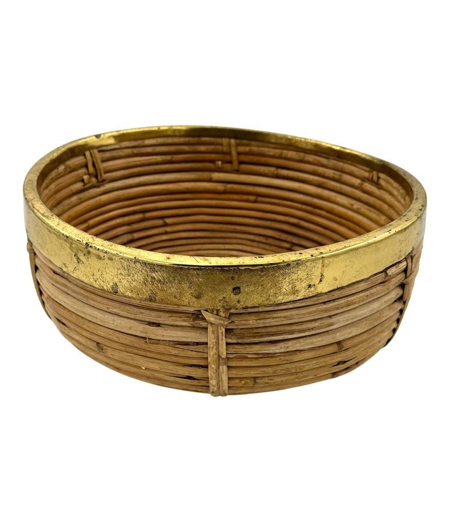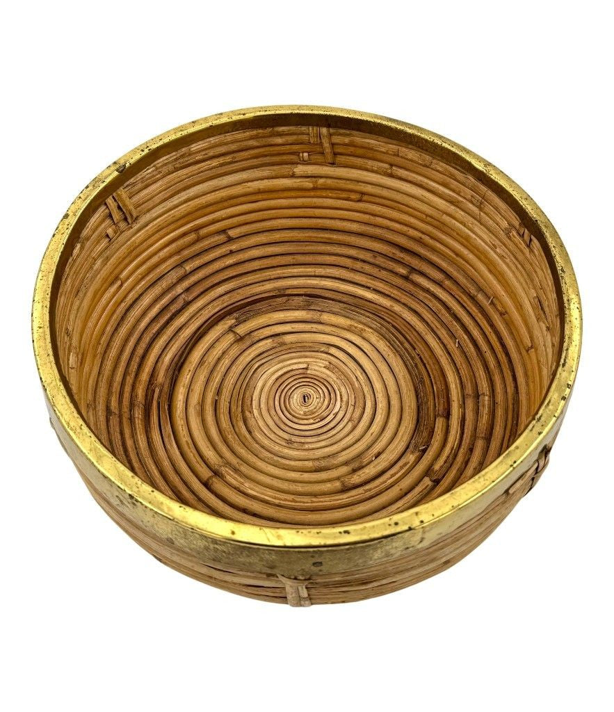 An Italian 1970s bamboo and brass circular bowl