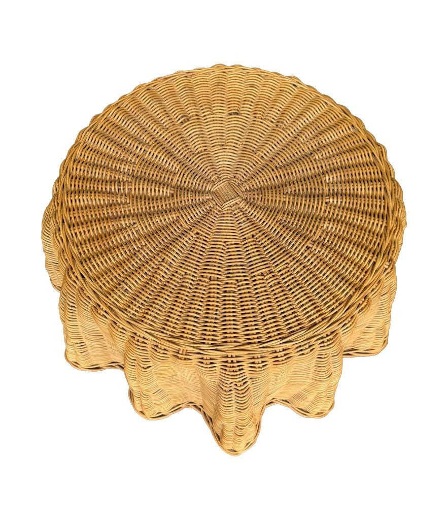 An Italian 1970s Bonacina style woven rattan "draped" side table with cost iron legs.