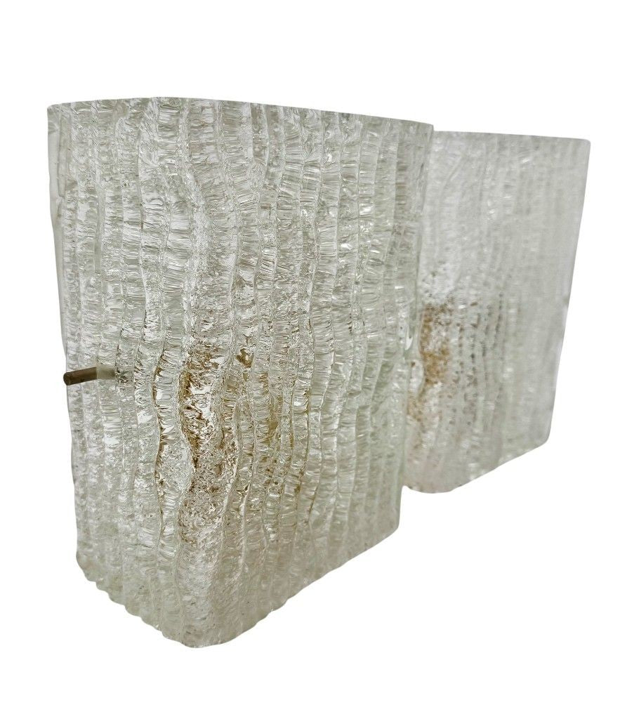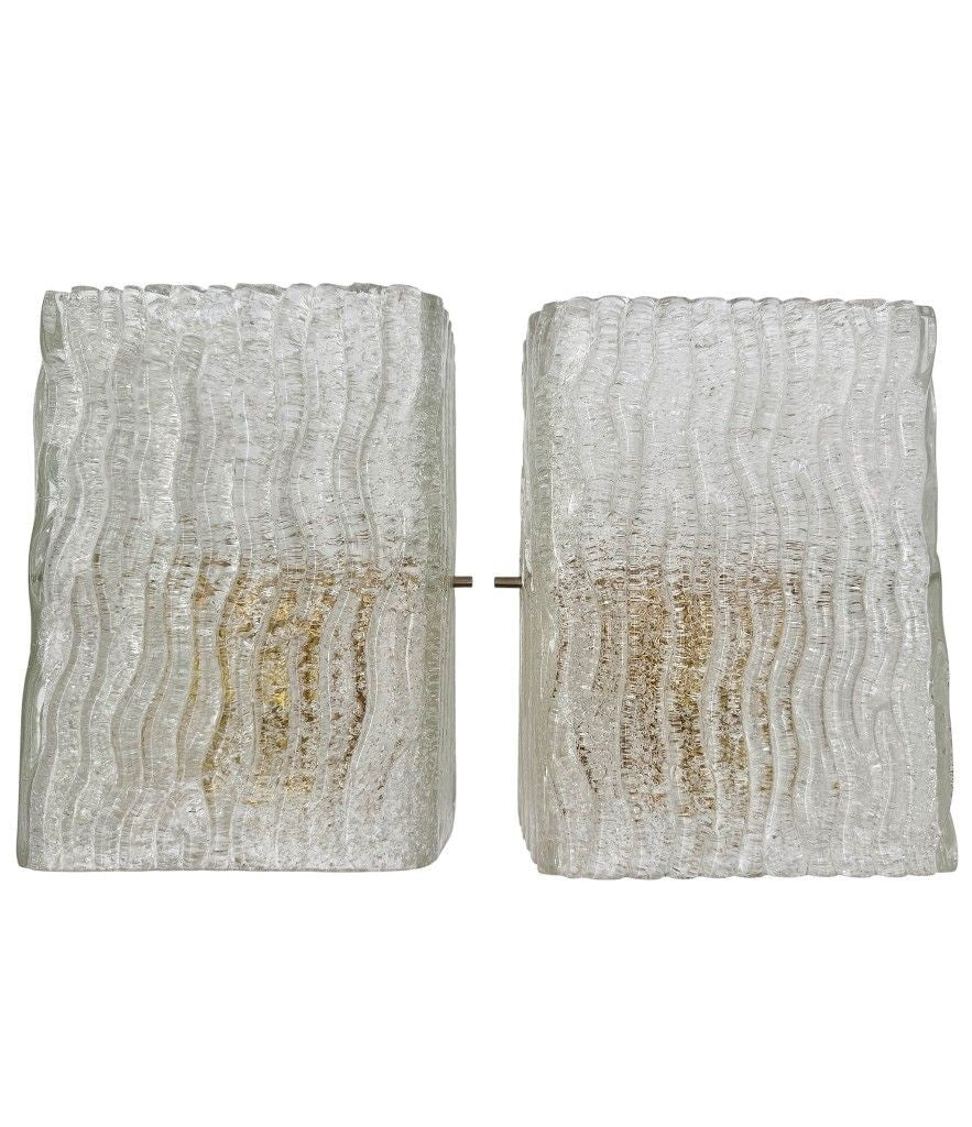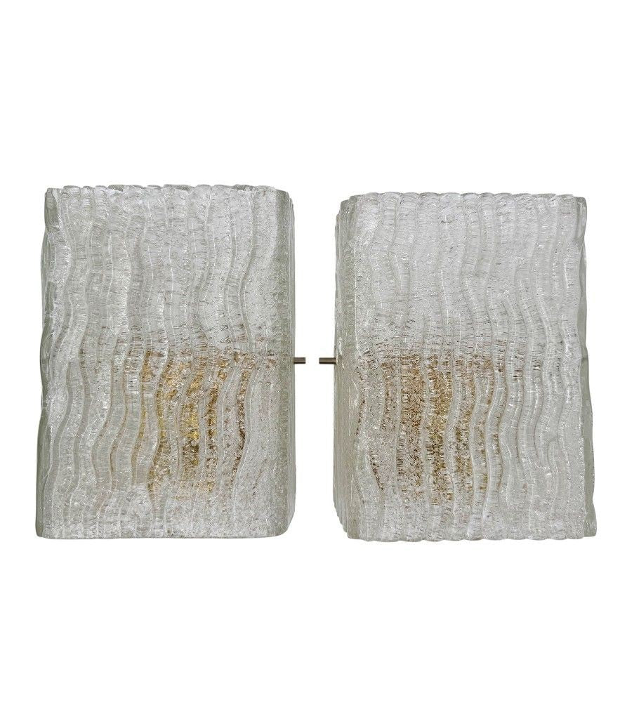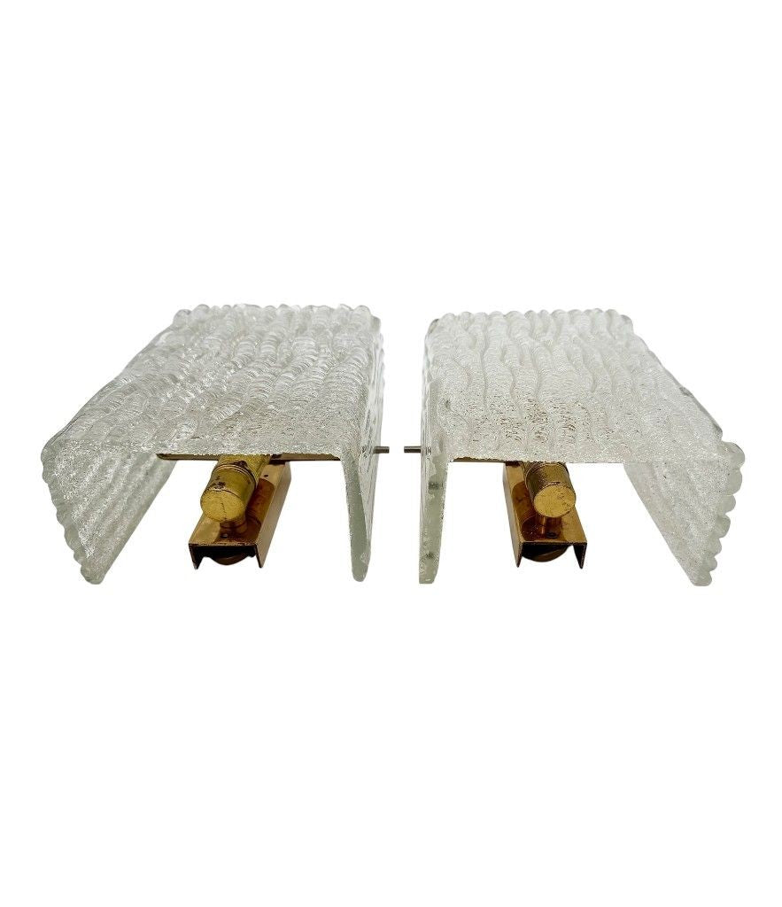 A pair 1970s "Ice glass" Murano wall sconces by German lighting company RZB Leuchten