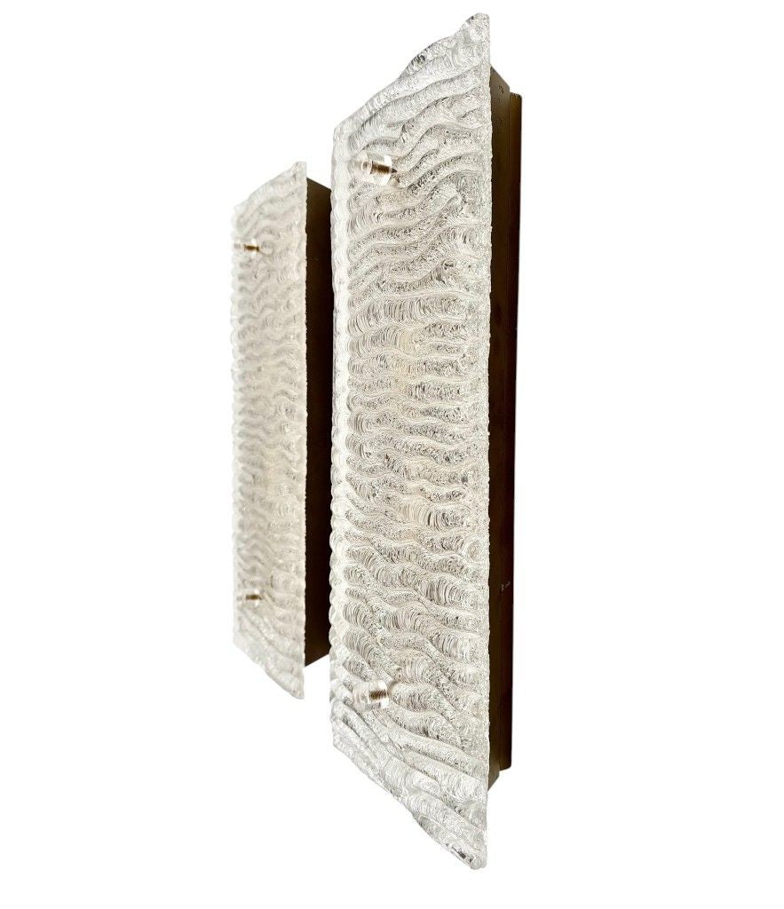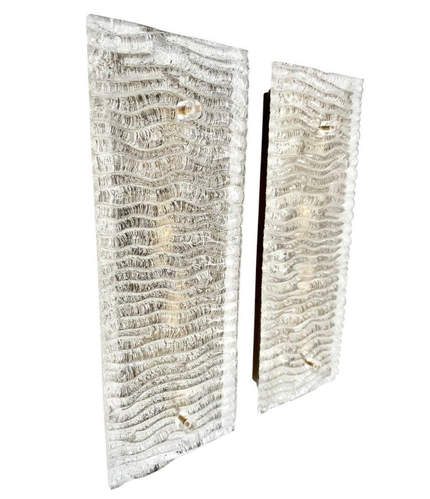 A pair of large 1970s German "Ice Glass" wall lights by Leutchens